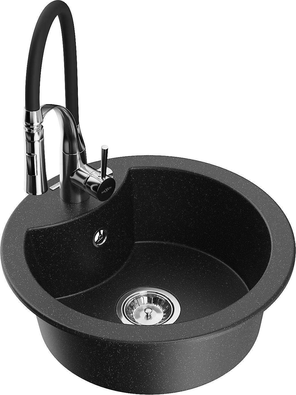Mexen Diego lavello in granito a 1 vasca con rubinetto da cucina Aster, nero/metallico argento - 6512-73-73450-07