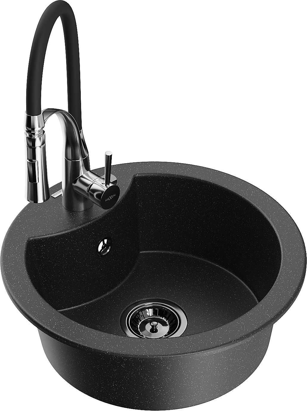 Mexen Diego lavello in granito a 1 vasca con rubinetto da cucina Aster, nero/metallo argento - 6512-73-73450-07-B