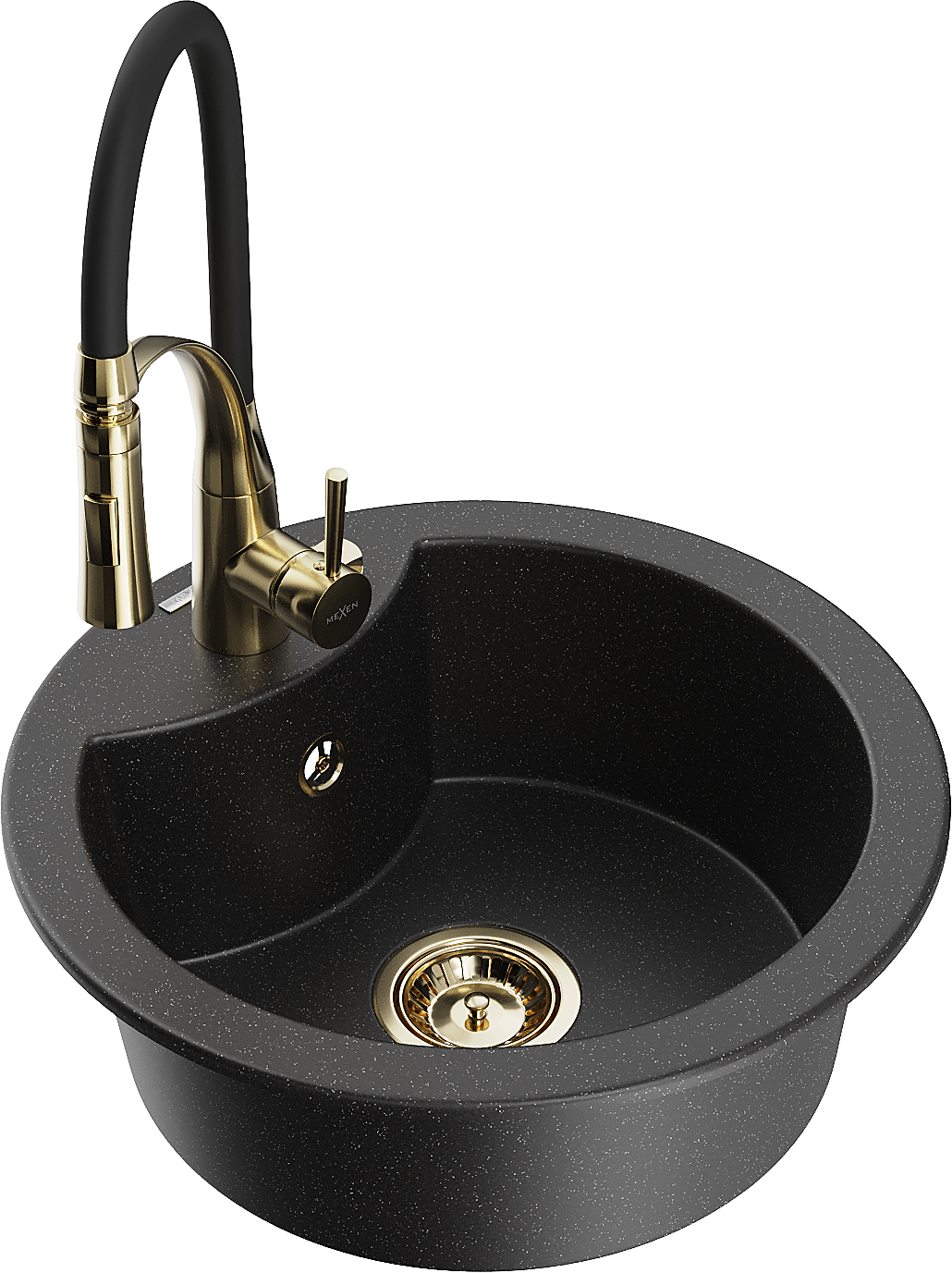Mexen Diego lavello da cucina in granito a 1 vasca con miscelatore Aster, nero/metallo argento - 6512-73-73450-57-G
