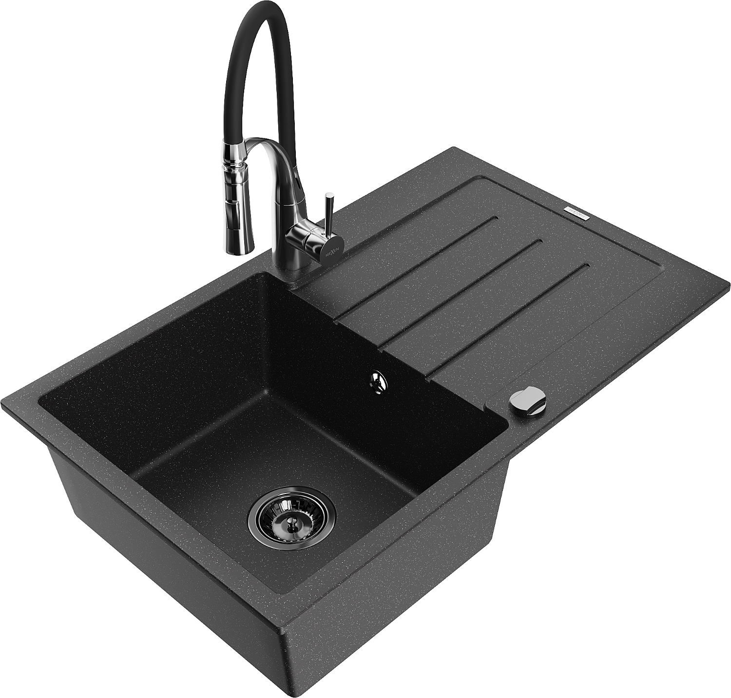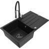 Mexen Bruno lavello in granito a 1 vasca con scolapiatti e miscelatore cucina Aster, nero/argento metallizzato