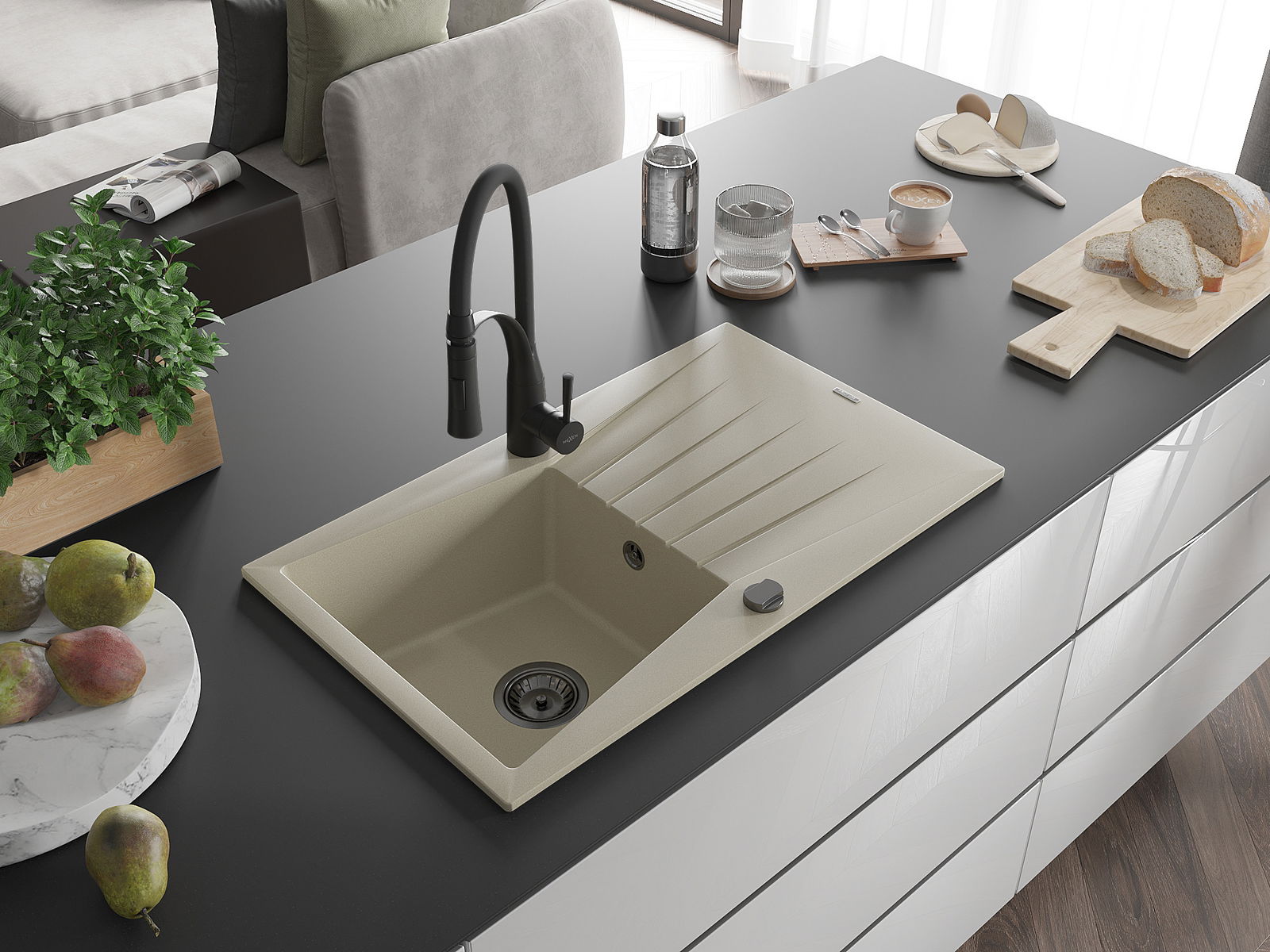 Il lavello è realizzato in granito di alta qualità. Rappresenta un complemento elegante e, soprattutto, pratico per ogni cucina, indipendentemente dal suo stile. L'alta qualità e la durata del granito garantiscono un utilizzo che dura per molti anni.