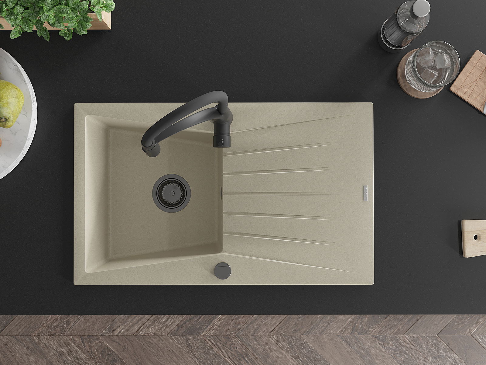 Mexen Cesar lavello in granito a 1 vasca con gocciolatoio e rubinetto da cucina Aster, beige - 6514-69-73450-70-B