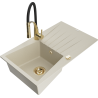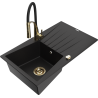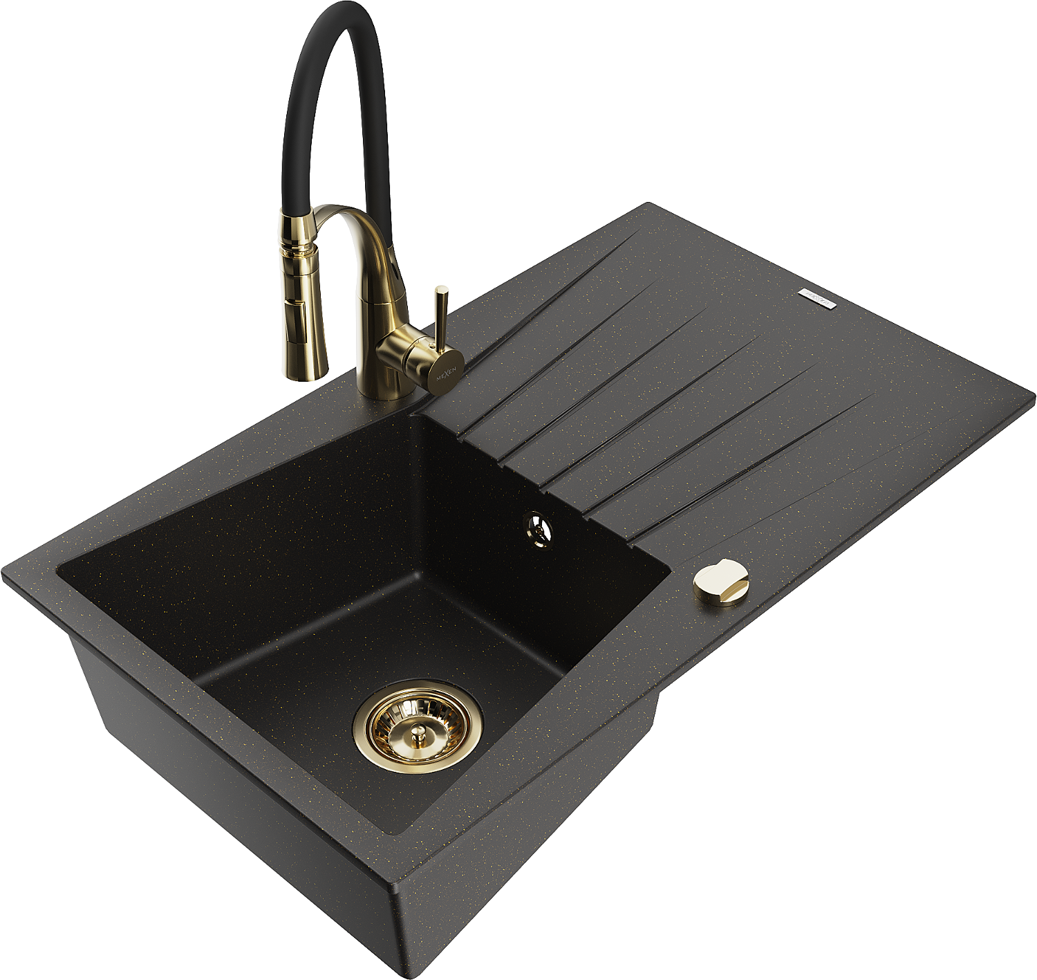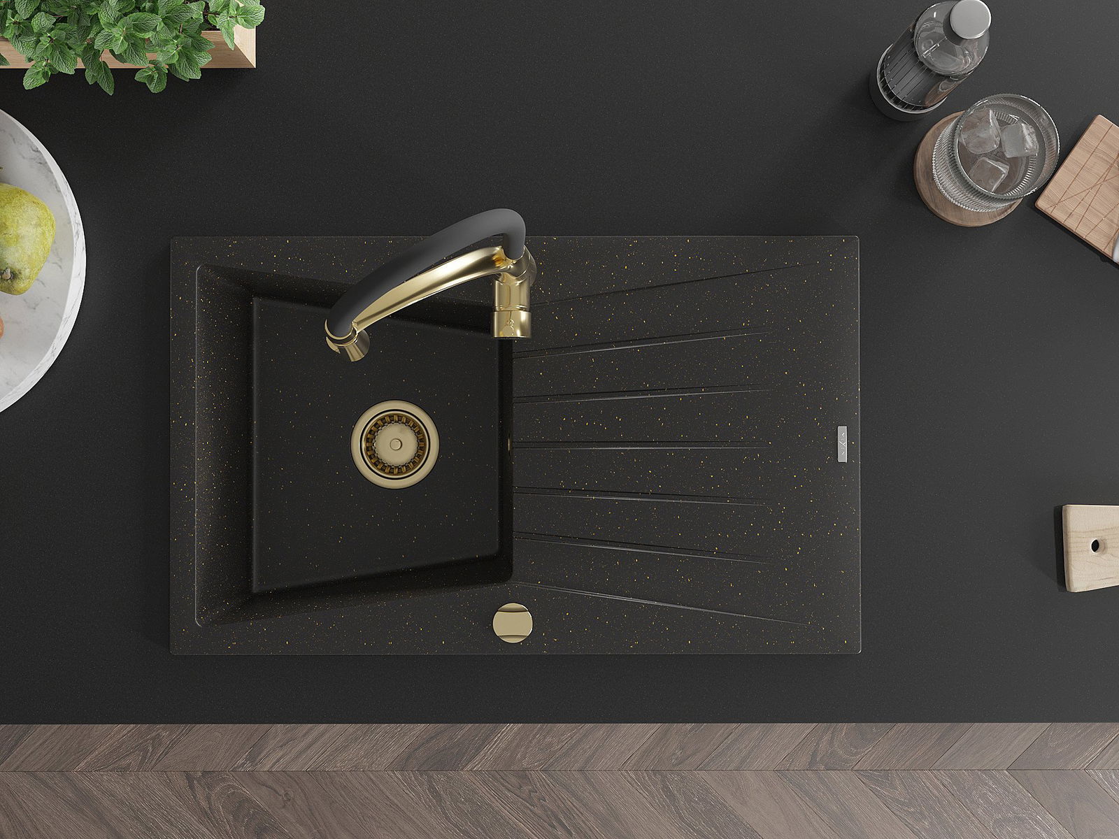 Mexen Cesar lavello in granito a 1 vasca con sgocciolatoio e miscelatore cucina Aster, nero/oro metallizzato