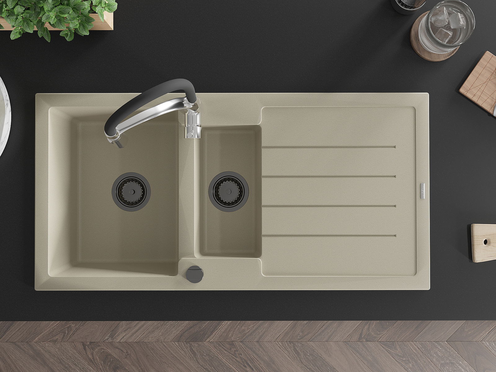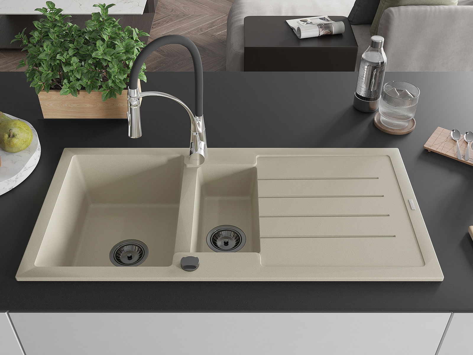 Il lavello è realizzato in granito di alta qualità. Rappresenta un complemento elegante e, soprattutto, pratico per ogni cucina, indipendentemente dal suo stile. L'alta qualità e la durata del granito garantiscono un utilizzo che dura per molti anni.