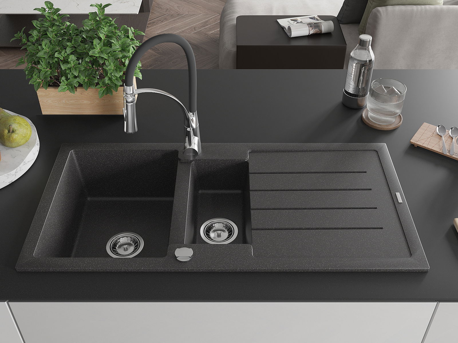 La scelta di un lavello con sgocciolatoio è una soluzione pratica che consente di riporre piatti, verdure e frutta lavati. Lo sgocciolatoio facilita la cucina quotidiana e aiuta a mantenere l'ordine in cucina.
