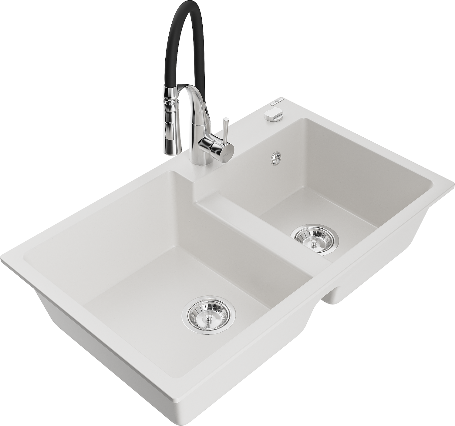 Mexen Tomas lavello in granito a 2 vasche con rubinetto da cucina Aster, bianco - 6516-20-73450-07