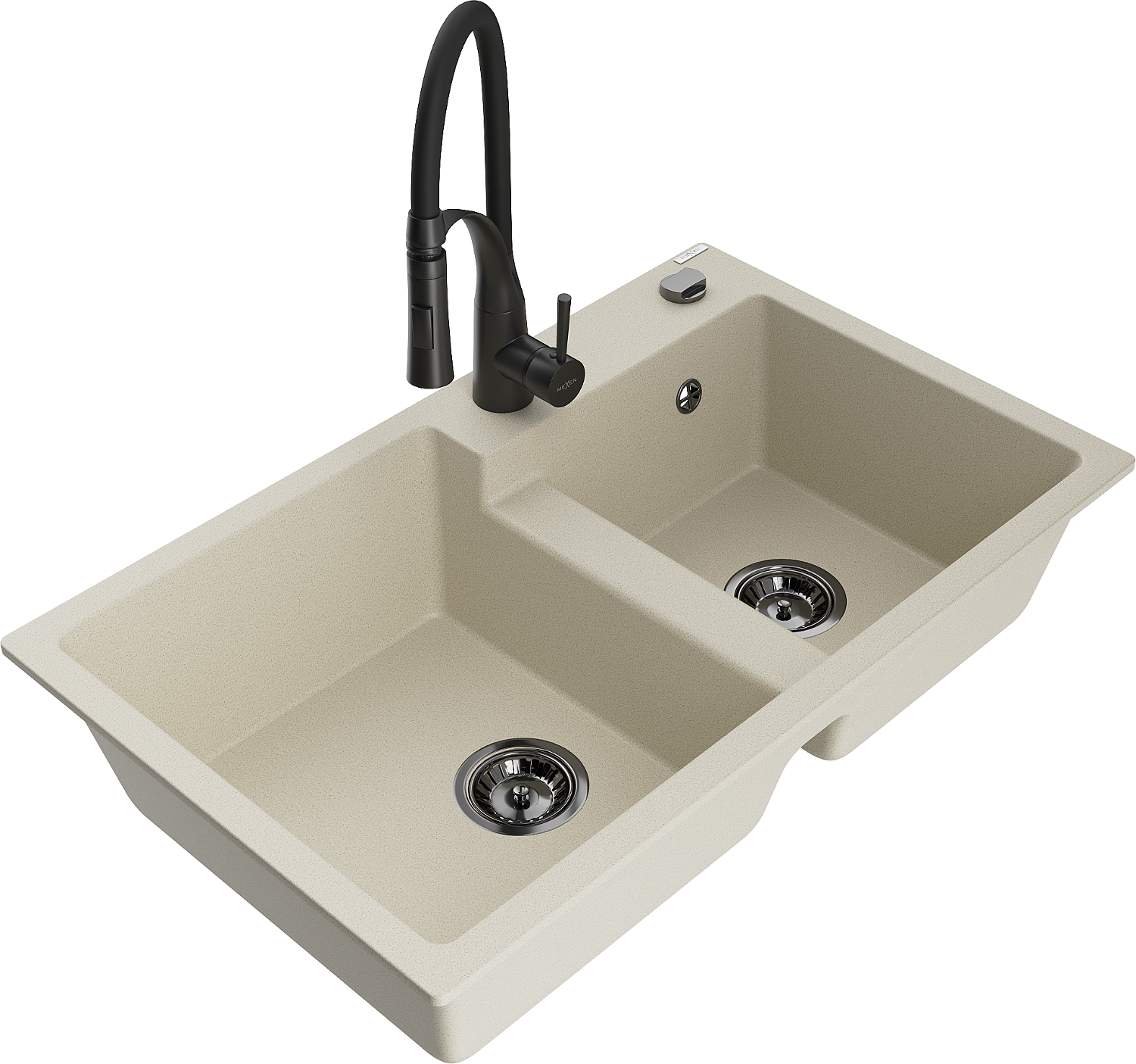 Mexen Tomas lavello in granito a 2 vasche con rubinetto da cucina Aster, beige - 6516-69-73450-70-B