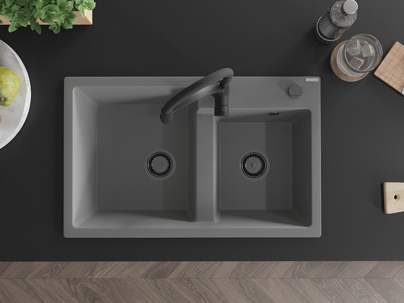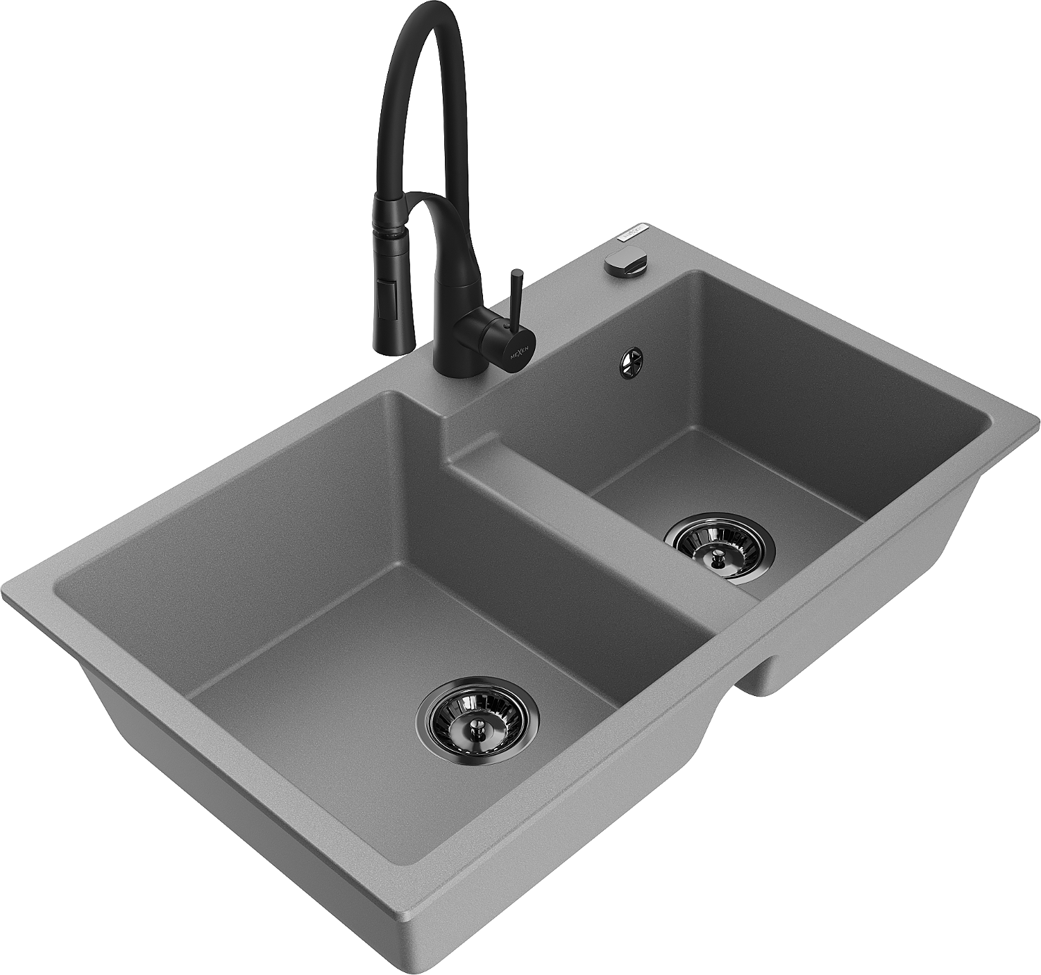 Mexen Tomas lavello in granito a 2 vasche con miscelatore da cucina Aster, grigio - 6516-71-73450-70-B