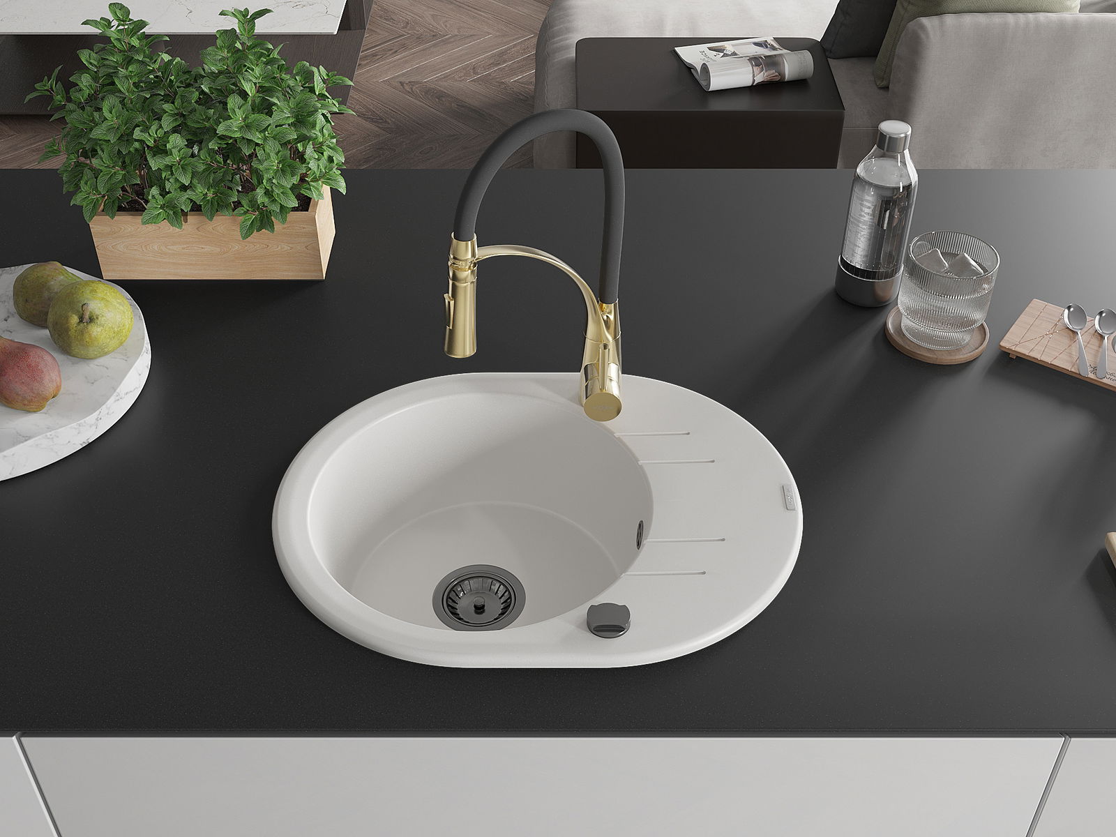 Il lavello è realizzato in granito di alta qualità. Rappresenta un complemento elegante e, soprattutto, pratico per ogni cucina, indipendentemente dal suo stile. L'alta qualità e la durata del granito garantiscono un utilizzo che dura per molti anni.