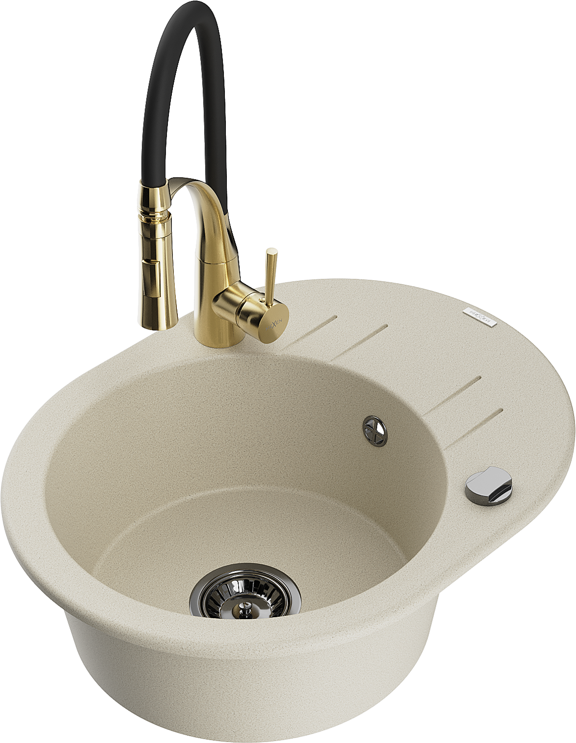 Mexen Kevin lavello da cucina in granito a 1 vasca con scolapiatti e rubinetto da cucina Aster, beige - 6517-69-73450-57-B