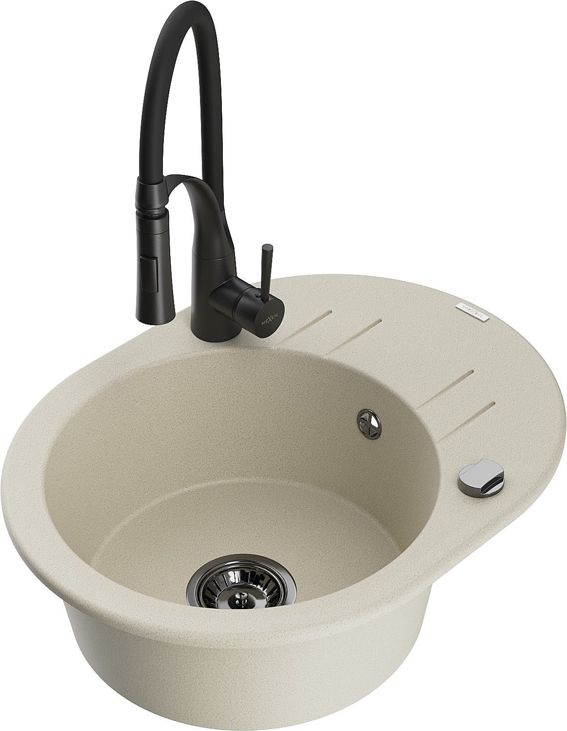 Mexen Kevin lavello in granito a 1 vasca con scolapiatti e miscelatore da cucina Aster, beige - 6517-69-73450-70-B