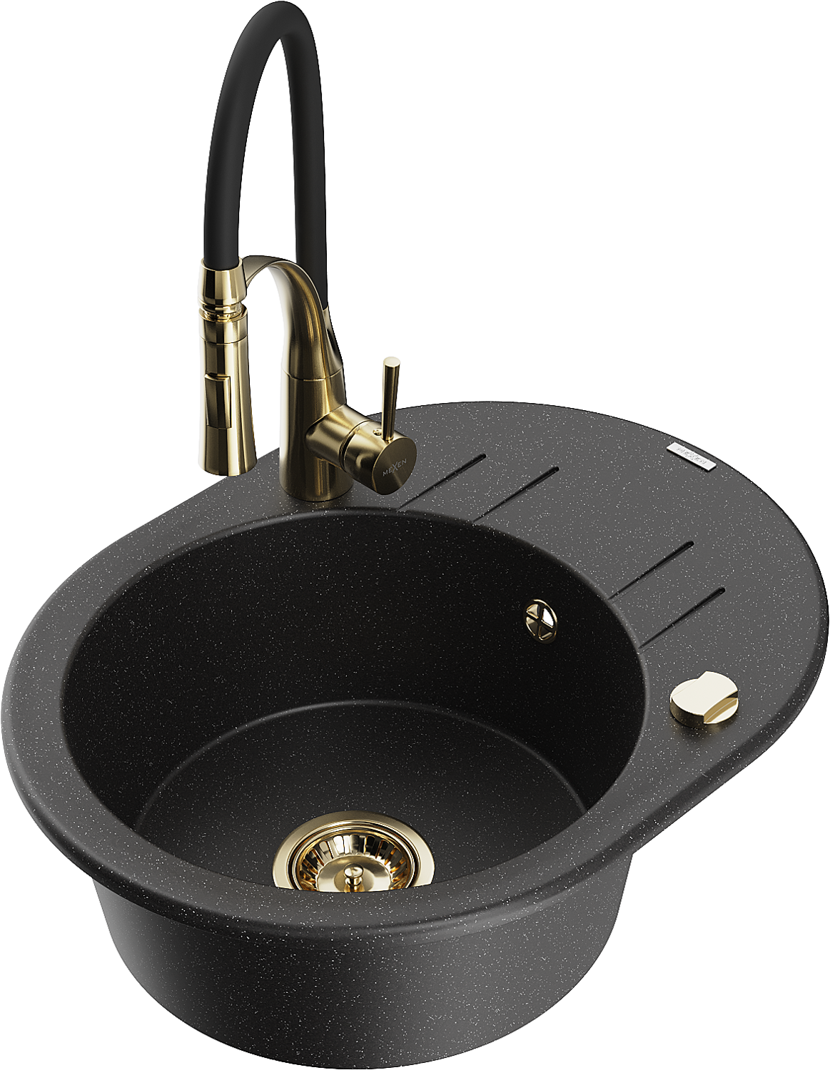 Mexen Kevin lavello in granito 1 vasca con scolapiatti e rubinetto da cucina Aster, nero/argento metallizzato