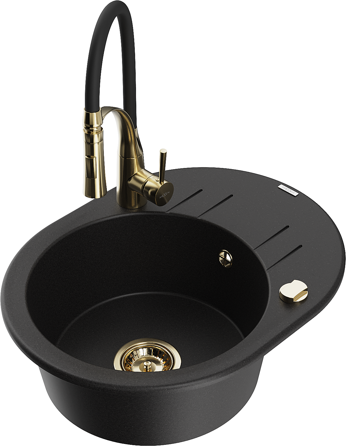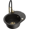 Mexen Kevin lavello in granito 1 vasca con sgocciolatoio e rubinetto cucina Aster, nero - 6517-77-73450-57-G