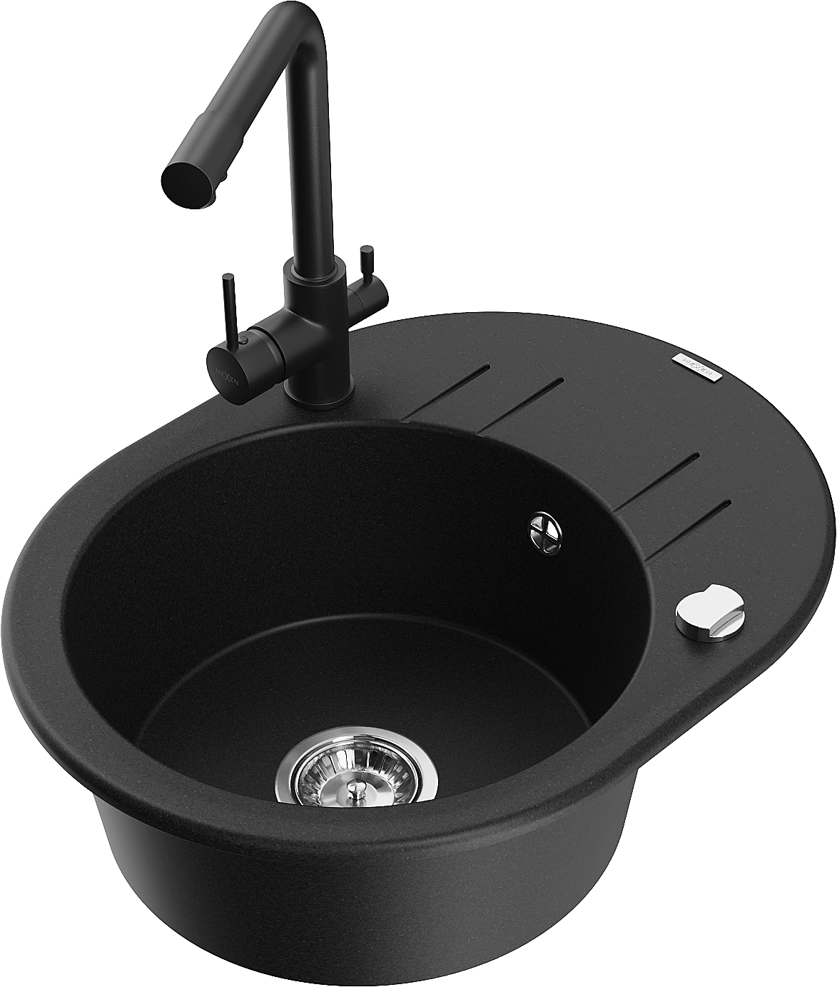 Mexen Kevin lavello in granito a 1 vasca con sgocciolatoio e rubinetto da cucina Duero, nero - 6517-77-671600-70