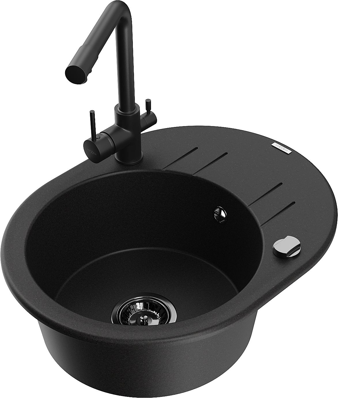 Mexen Kevin lavello in granito a 1 vasca con scolapiatti e miscelatore cucina Duero, nero - 6517-77-671600-70-B