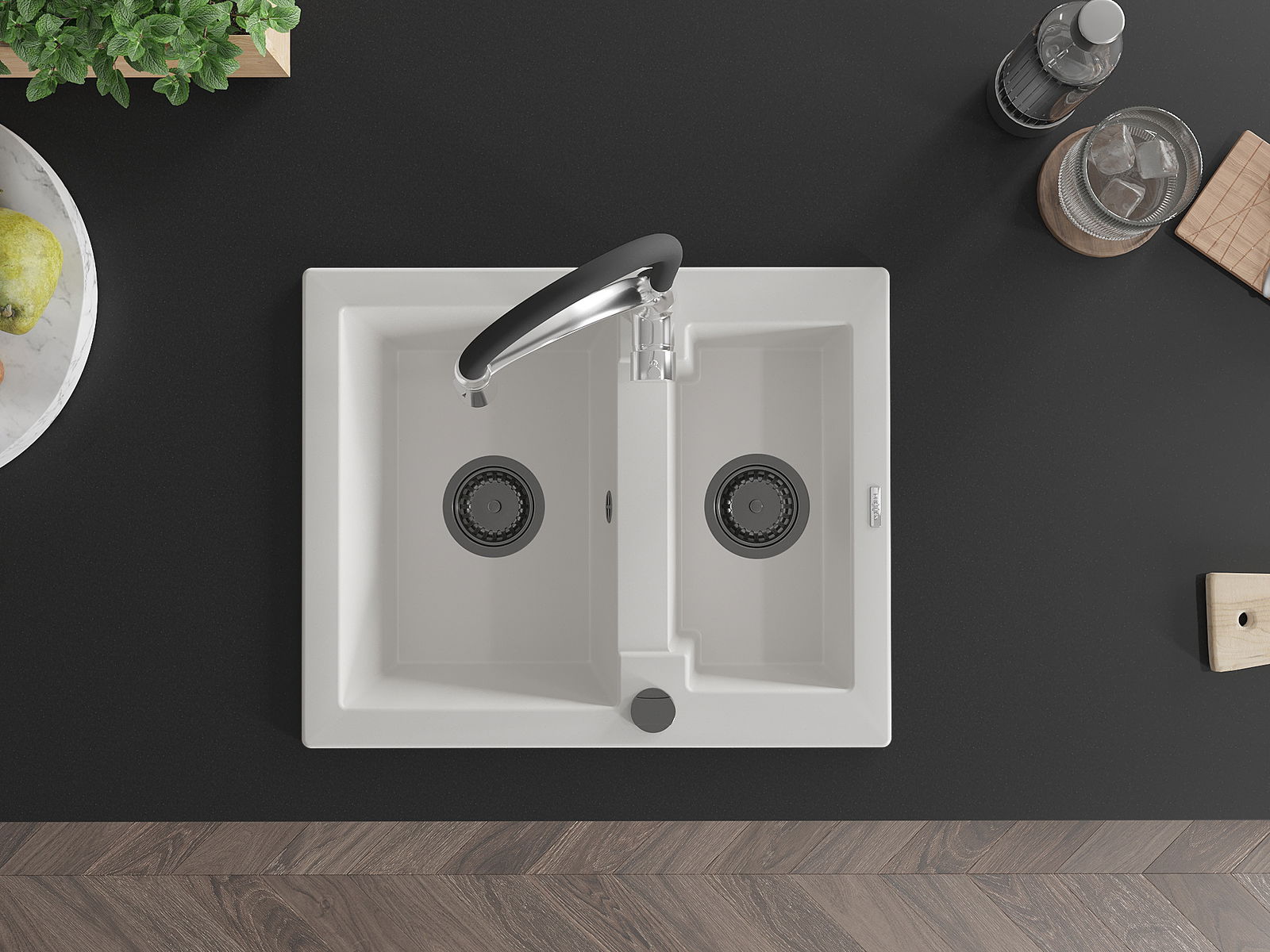 Mexen Carlos lavello in granito a 1,5 vasche con miscelatore da cucina Aster, bianco - 6518-20-73450-07-B
