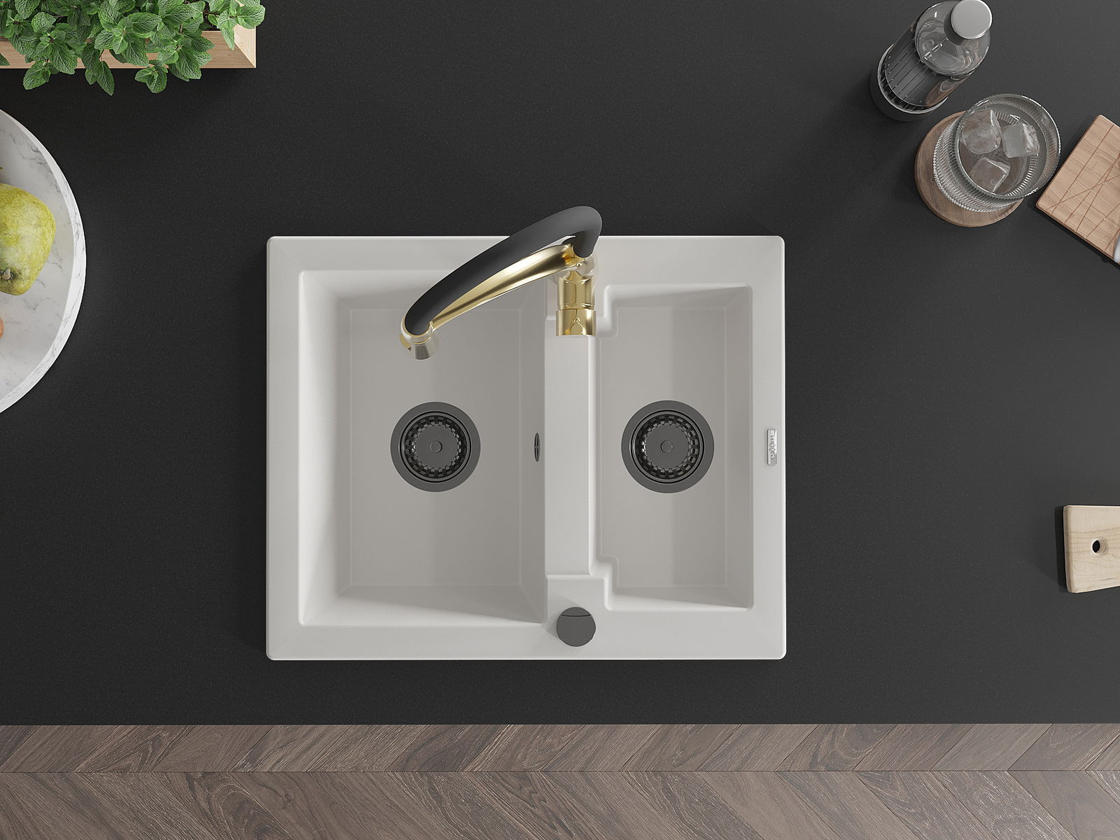 Mexen Carlos lavello in granito 1,5 vasche con miscelatore da cucina Aster, bianco - 6518-20-73450-57-B