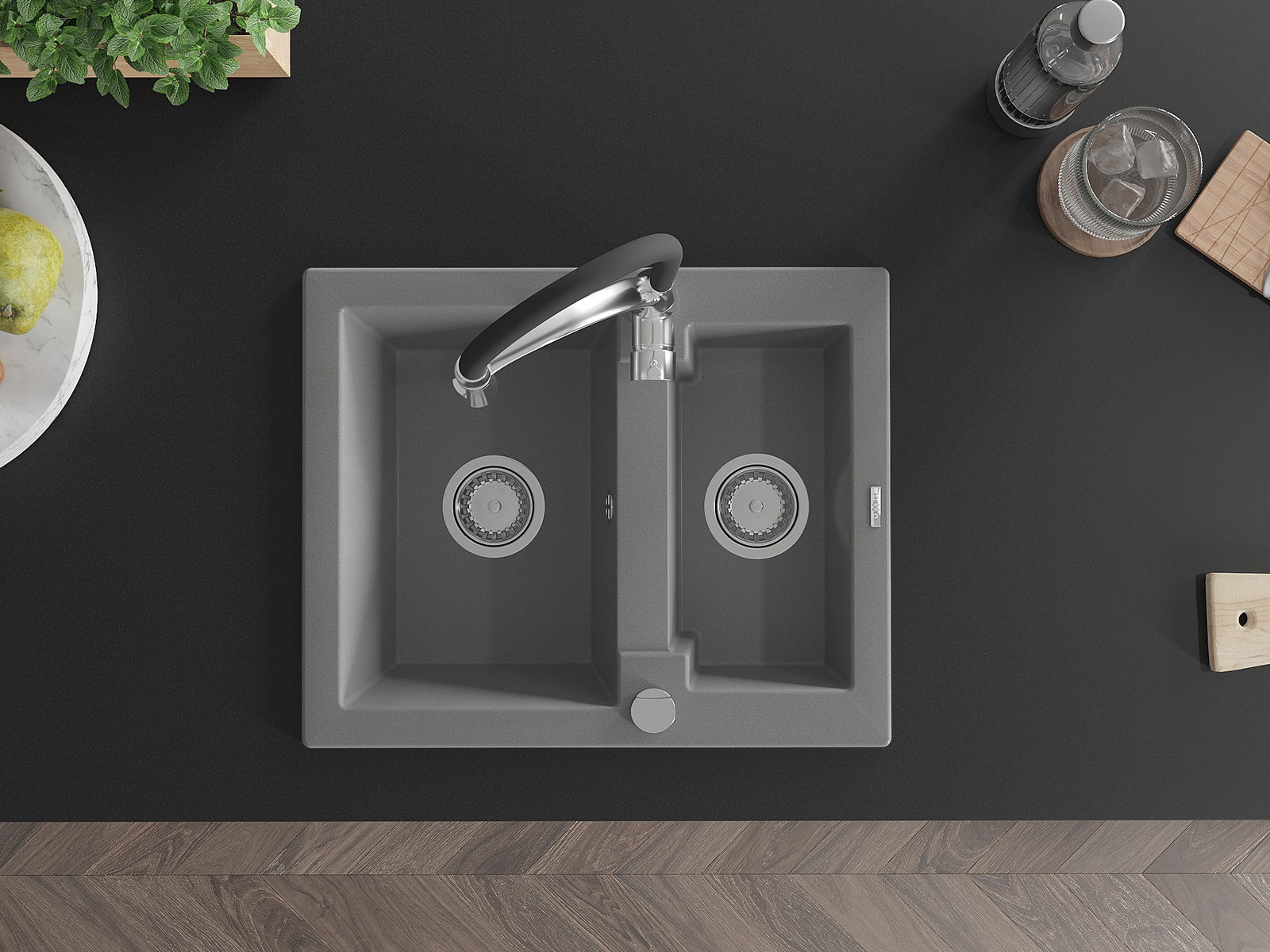 Mexen Carlos lavello in granito 1,5 vasca con rubinetto cucina Aster, grigio - 6518-71-73450-07