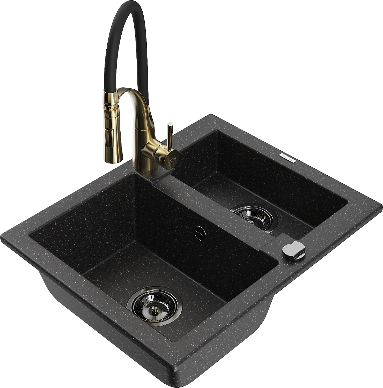 Mexen Carlos lavello in granito 1,5 vasche con rubinetto da cucina Aster, nero/argento metallizzato - 6518-73-73450-57-B