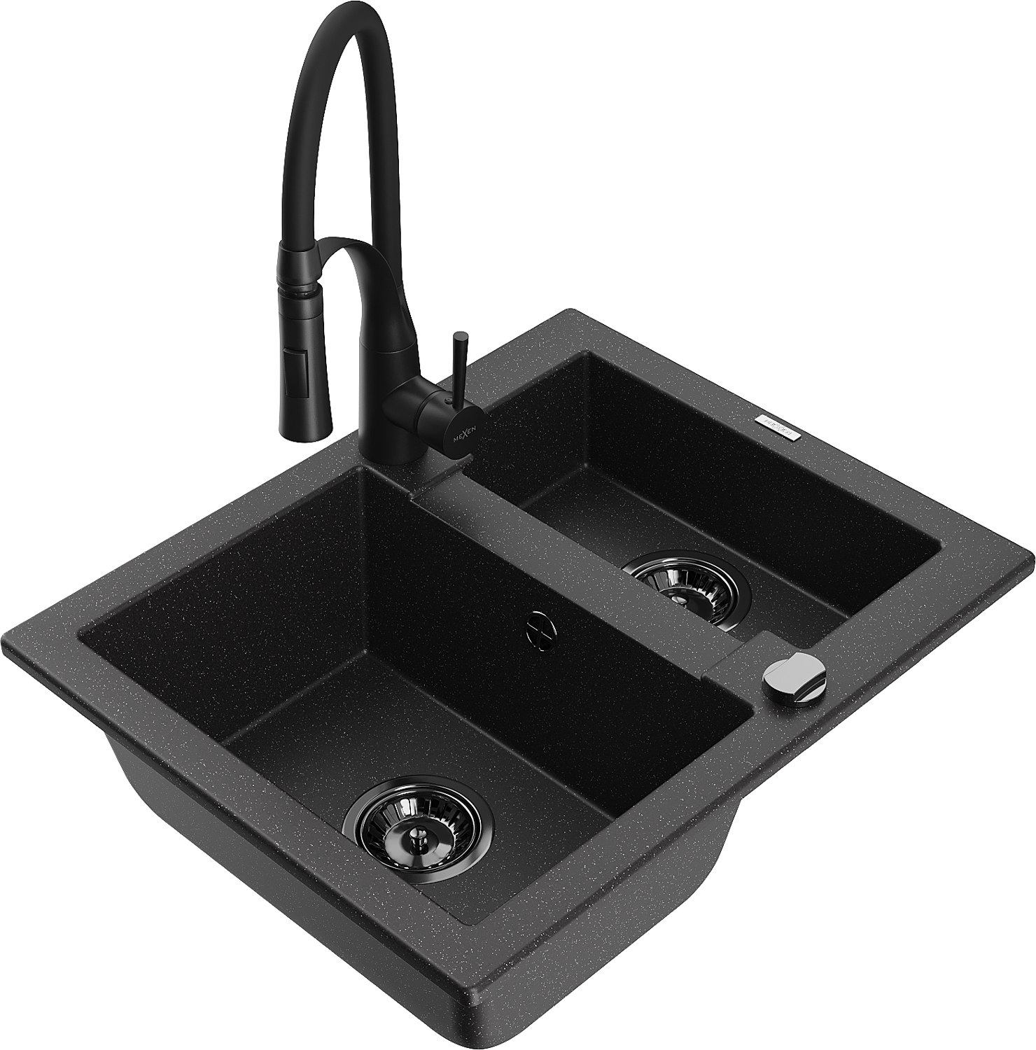 Mexen Carlos lavello in granito 1,5 vasca con miscelatore da cucina Aster, nero/argento metallizzato - 6518-73-73450-70-B