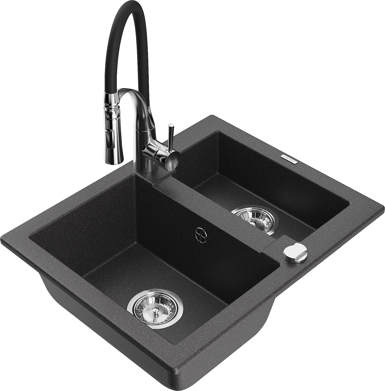 Mexen Carlos lavello in granito a 1,5 vasche con miscelatore da cucina Aster, nero maculato - 6518-76-73450-07