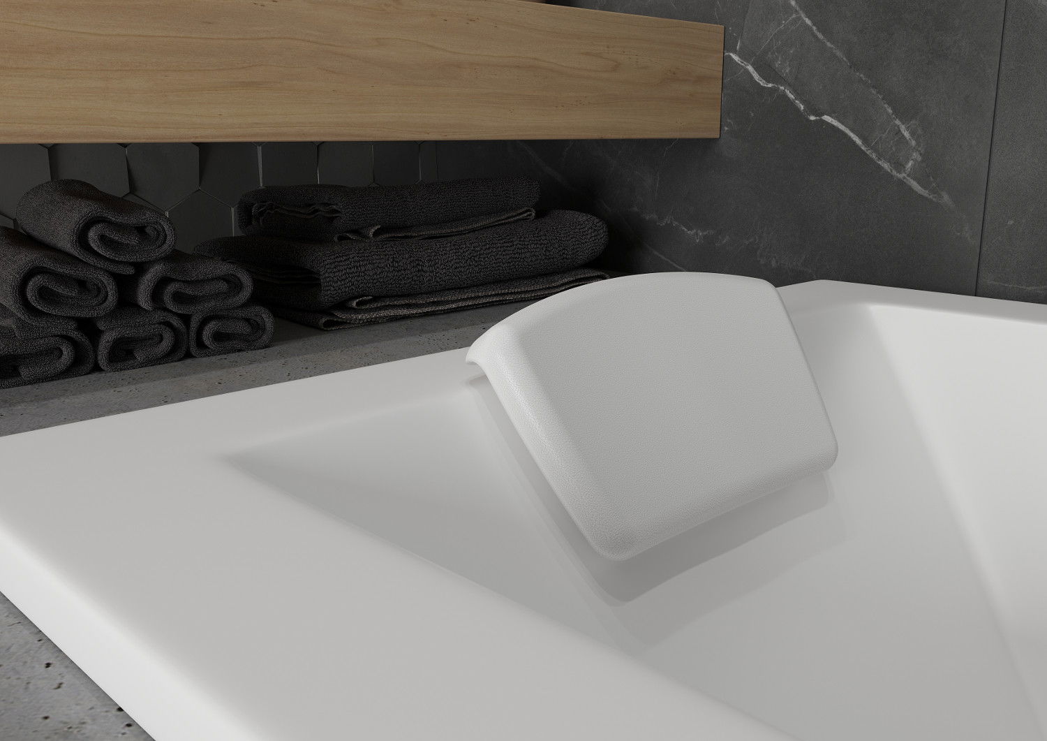 Il poggiatesta è fissato tramite una ventosa, senza danneggiare la superficie della vasca. Il montaggio non invasivo consente un rapido e comodo cambiamento della posizione del poggiatesta, a seconda delle esigenze dell'utente, garantendo un alto comfort del bagno.