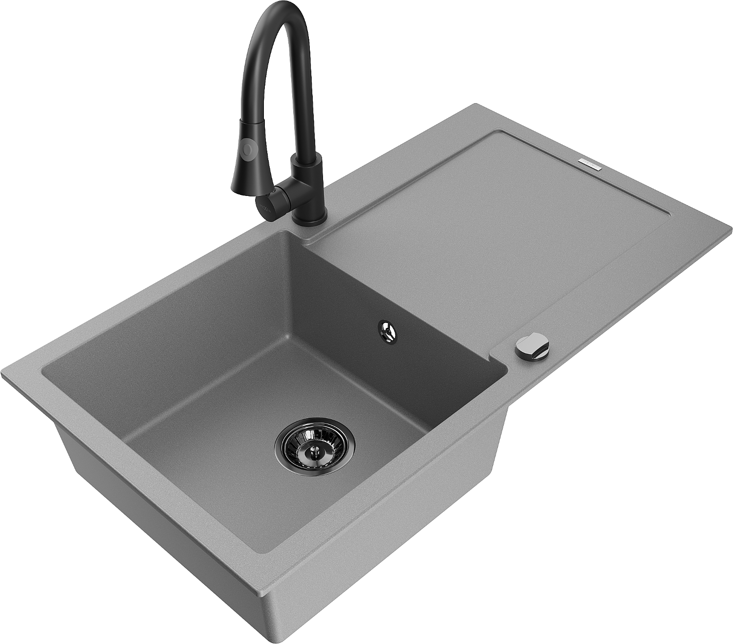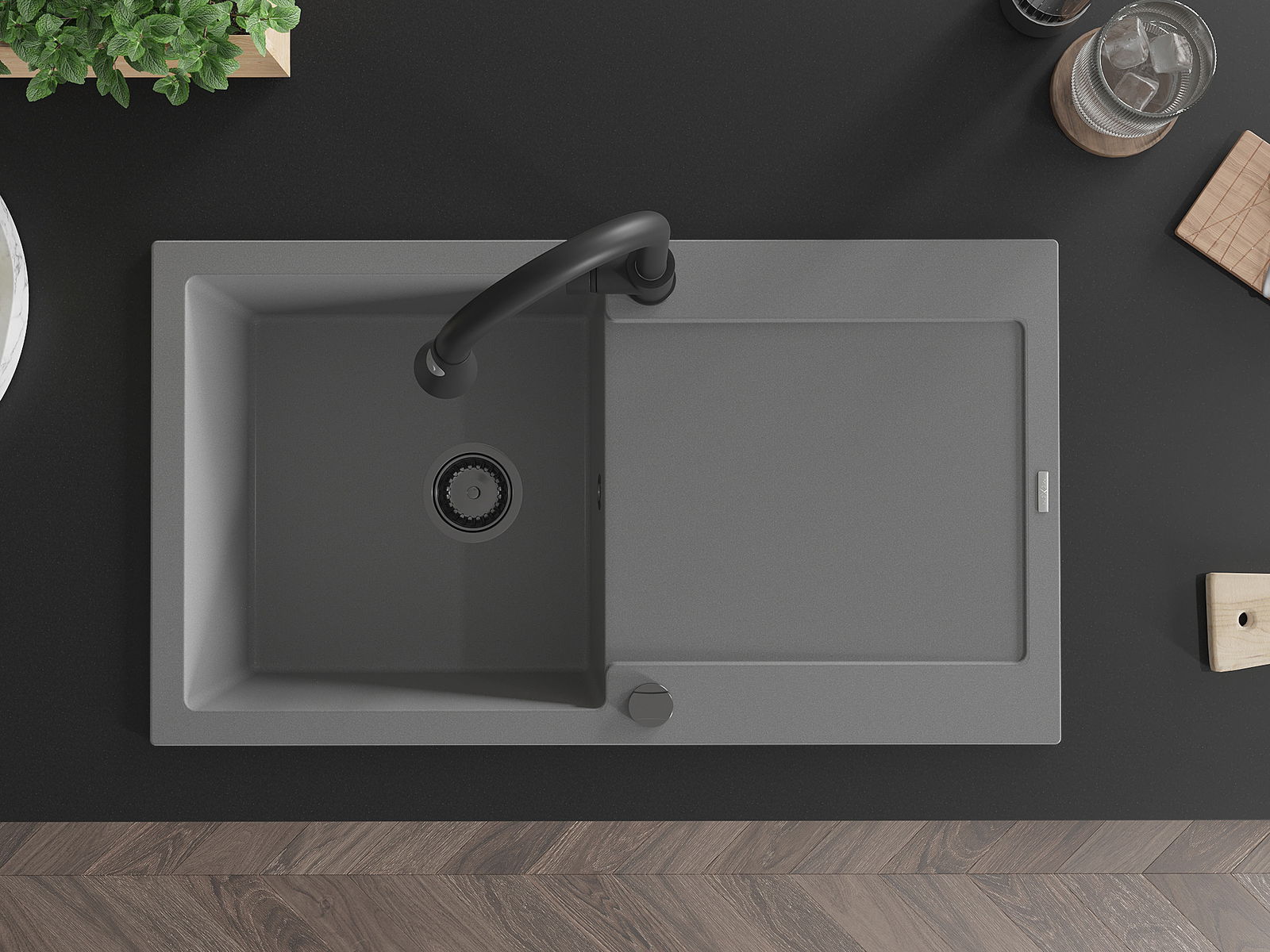 Mexen Leo lavello in granito 1-vasca con scolapiatti e miscelatore cucina Elia, grigio - 6501-71-670101-70-B