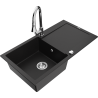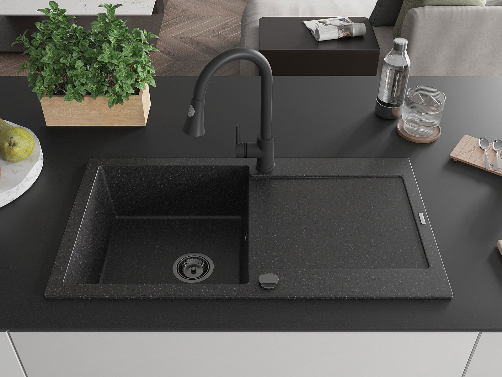 Mexen Leo lavello in granito a 1 vasca con sgocciolatoio e rubinetto da cucina Elia, nero/argento metallizzato