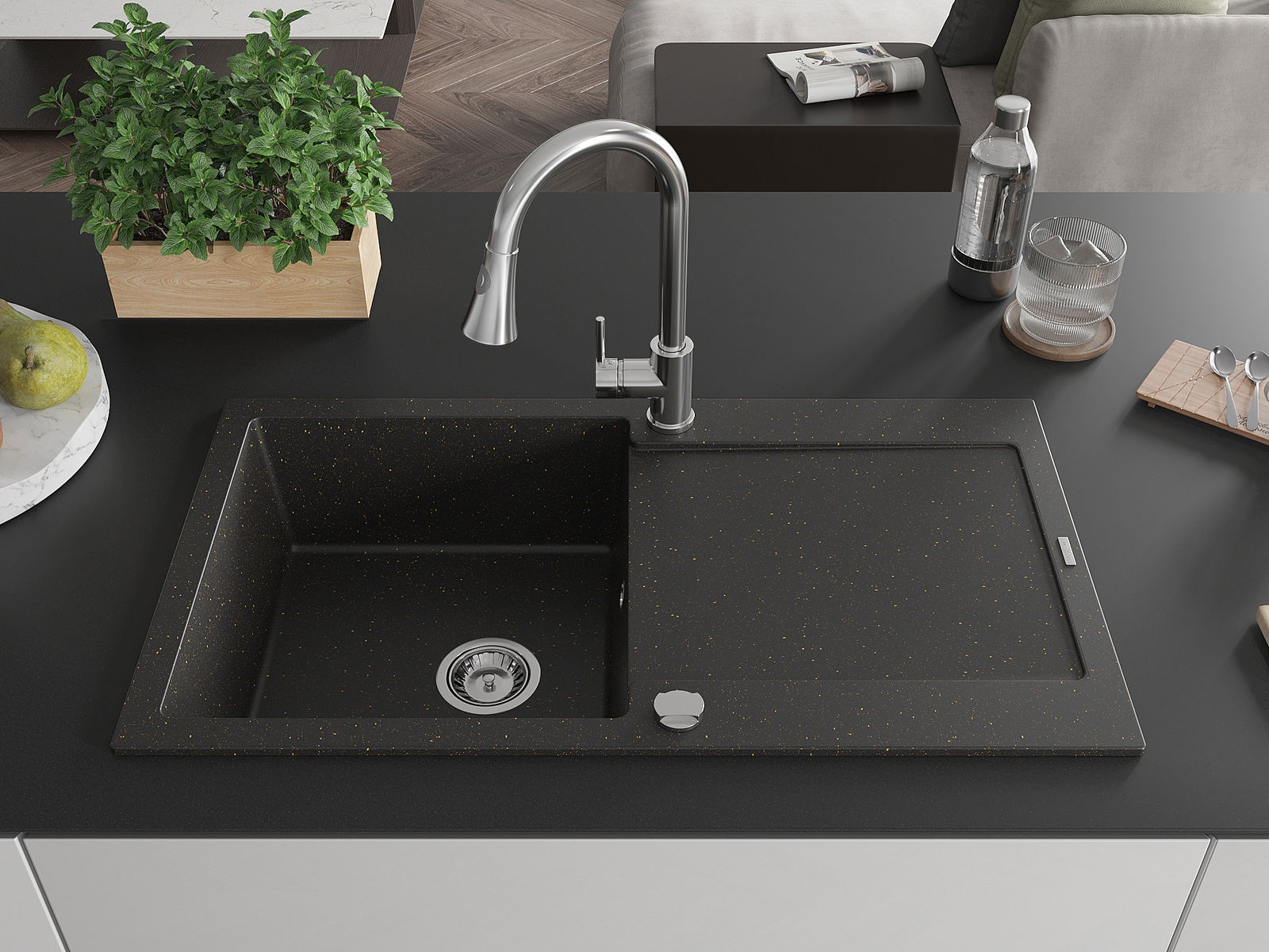 La scelta di un lavello con sgocciolatoio è una soluzione pratica che consente di riporre piatti, verdure e frutta lavati. Lo sgocciolatoio facilita la cucina quotidiana e aiuta a mantenere l'ordine in cucina.