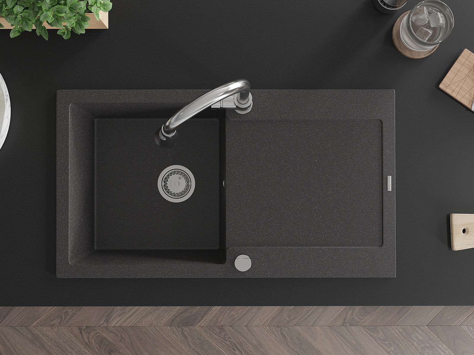 Il lavello è realizzato in granito di alta qualità. Rappresenta un complemento elegante e, soprattutto, pratico per ogni cucina, indipendentemente dal suo stile. L'alta qualità e la durata del granito garantiscono un utilizzo che dura per molti anni.