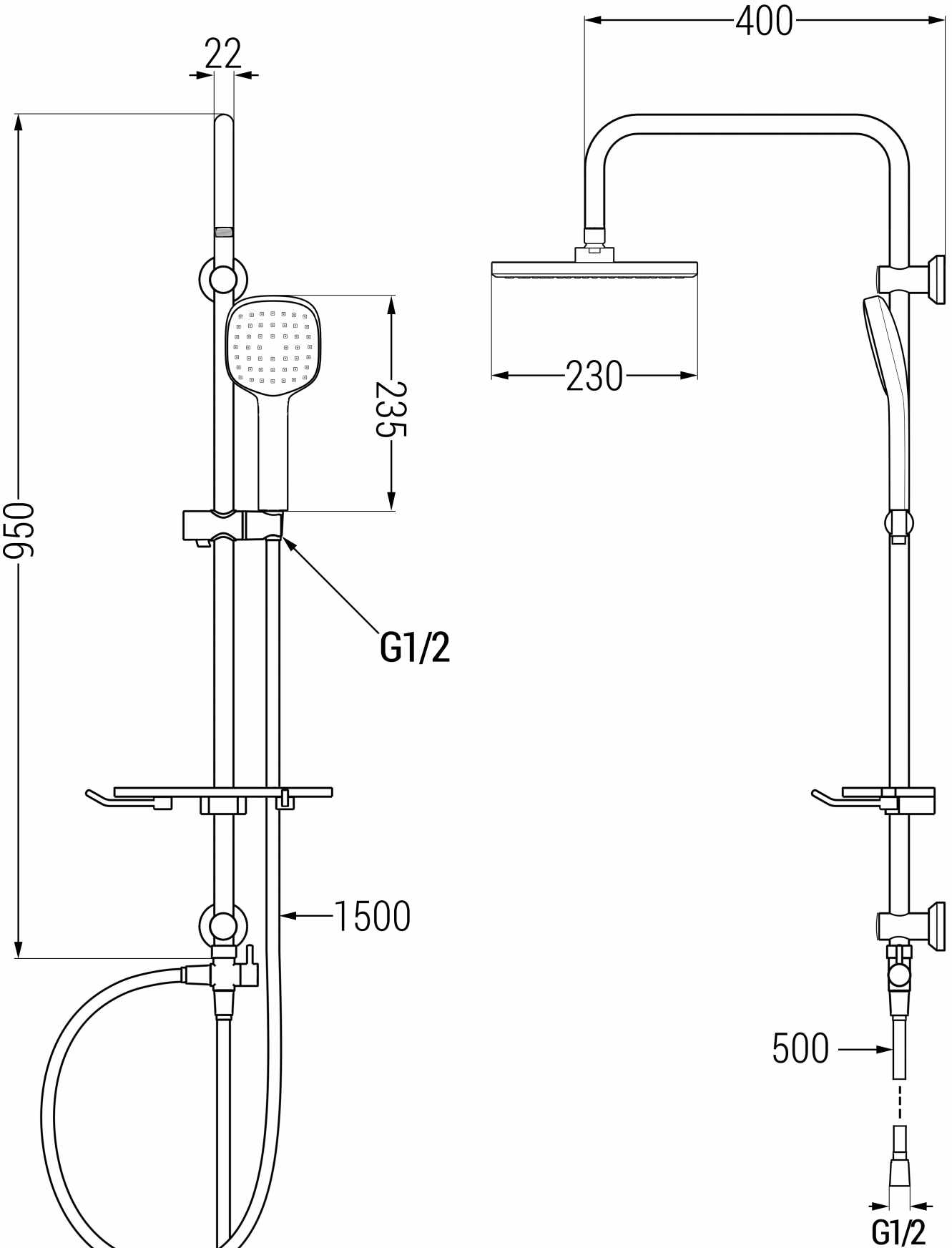 Dimensione soffione: 230x230 mm