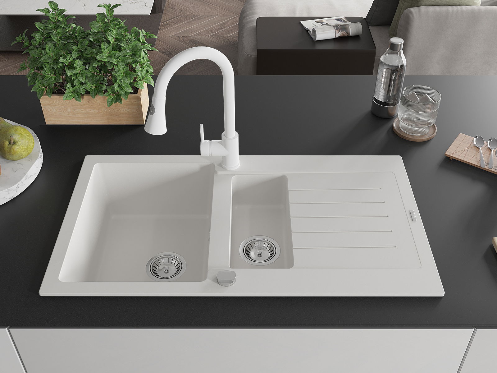 La scelta di un lavello con sgocciolatoio è una soluzione pratica che consente di riporre piatti, verdure e frutta lavati. Lo sgocciolatoio facilita la cucina quotidiana e aiuta a mantenere l'ordine in cucina.