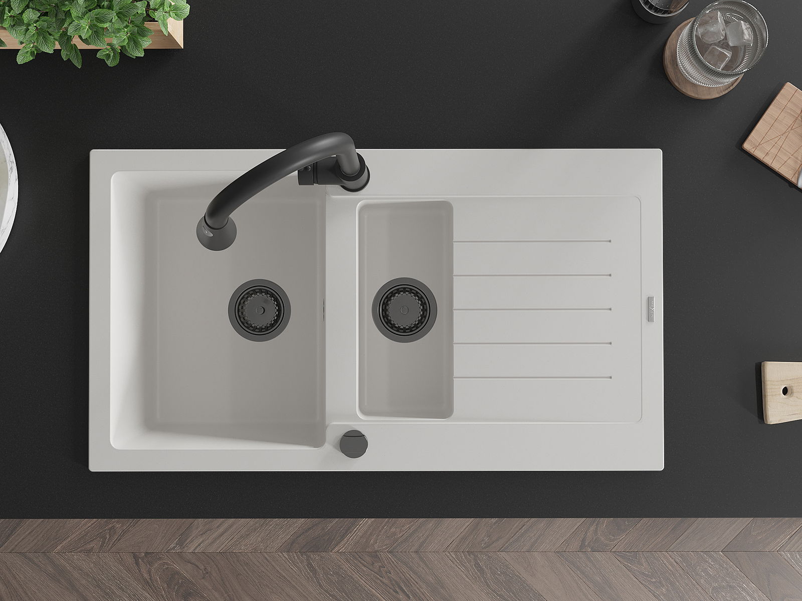 La scelta di un lavello con sgocciolatoio è una soluzione pratica che consente di riporre piatti, verdure e frutta lavati. Lo sgocciolatoio facilita la cucina quotidiana e aiuta a mantenere l'ordine in cucina.