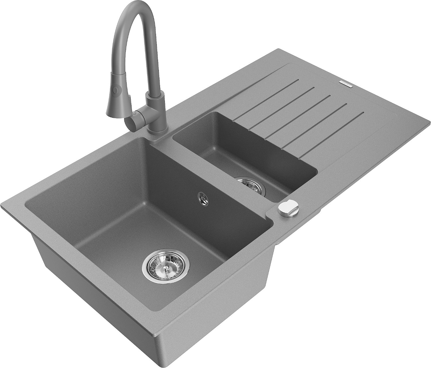 Mexen Matias lavello in granito 1.5 vasca con scolapiatti e rubinetto da cucina Elia, grigio - 6502-71-670101-71