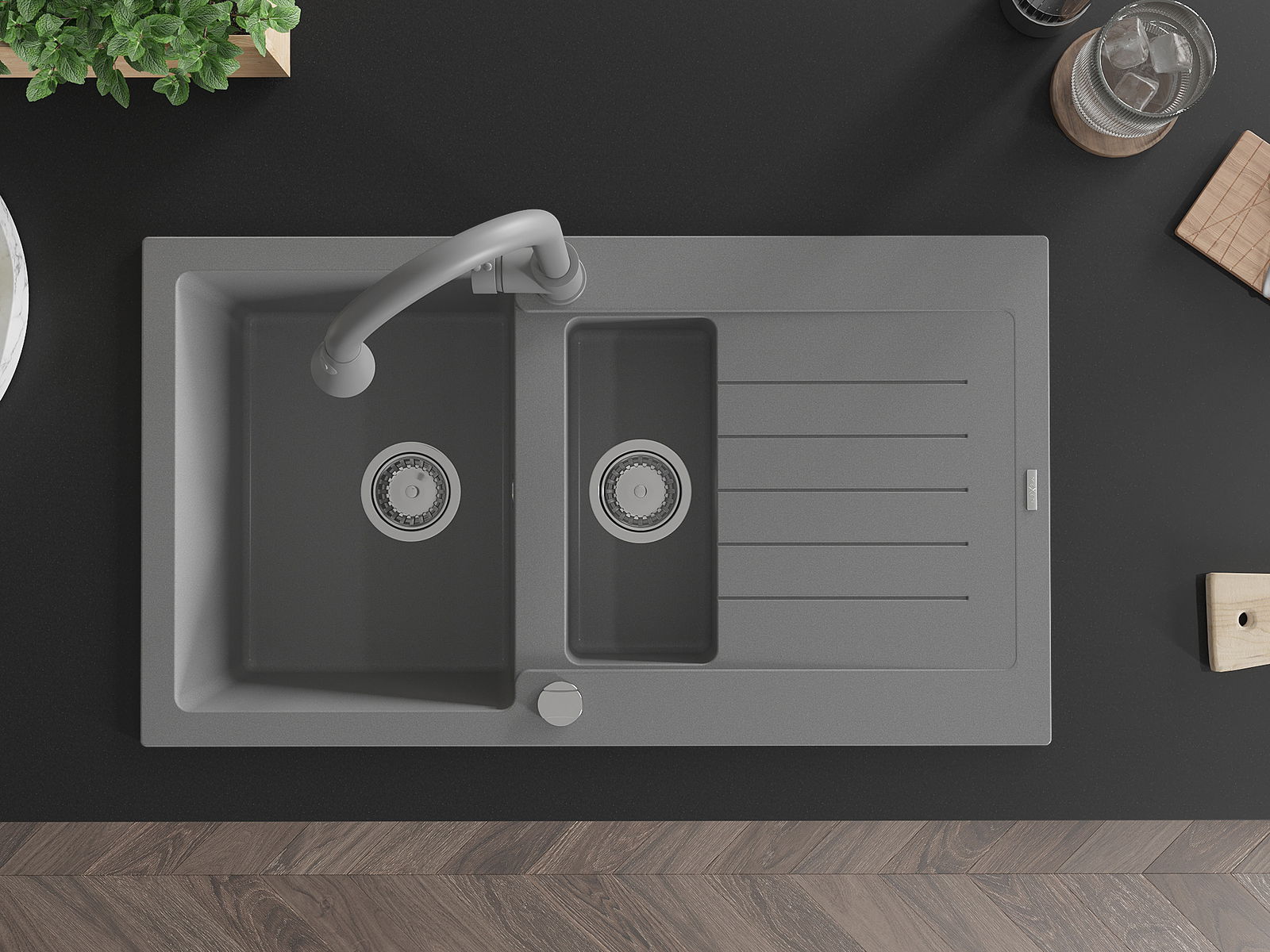La scelta di un lavello con sgocciolatoio è una soluzione pratica che consente di riporre piatti, verdure e frutta lavati. Lo sgocciolatoio facilita la cucina quotidiana e aiuta a mantenere l'ordine in cucina.