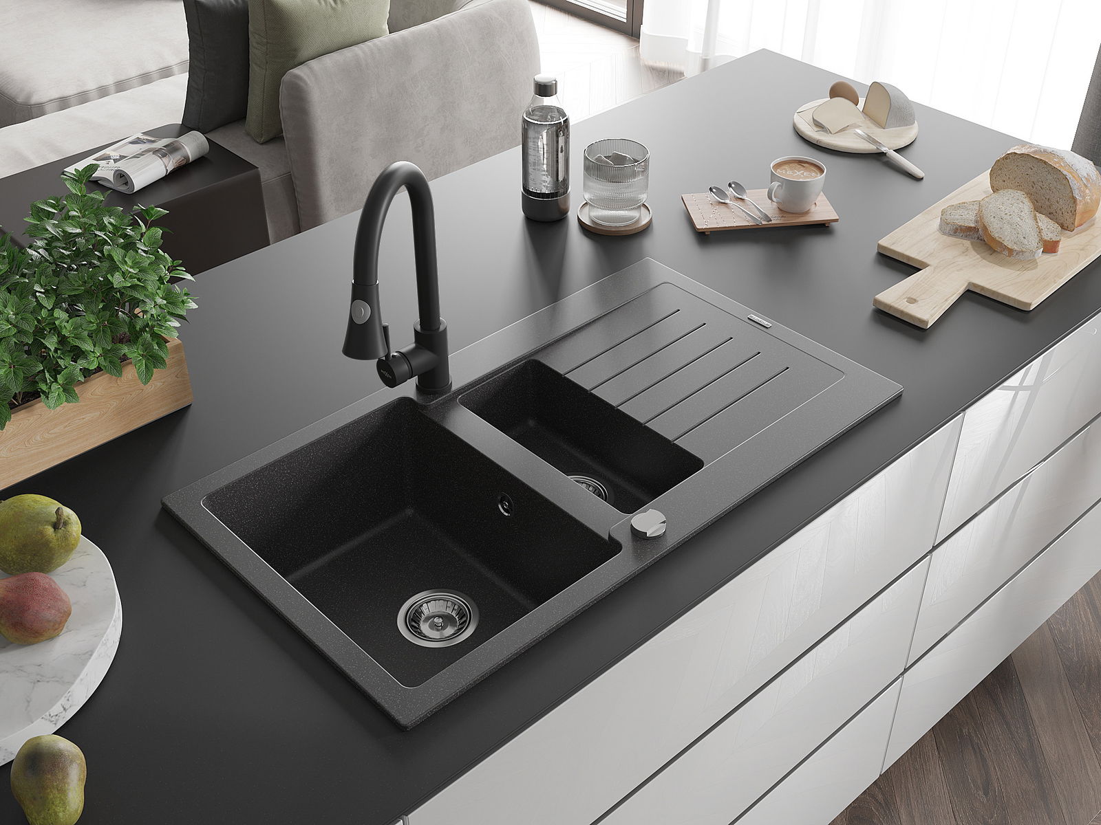 La scelta di un lavello con sgocciolatoio è una soluzione pratica che consente di riporre piatti, verdure e frutta lavati. Lo sgocciolatoio facilita la cucina quotidiana e aiuta a mantenere l'ordine in cucina.