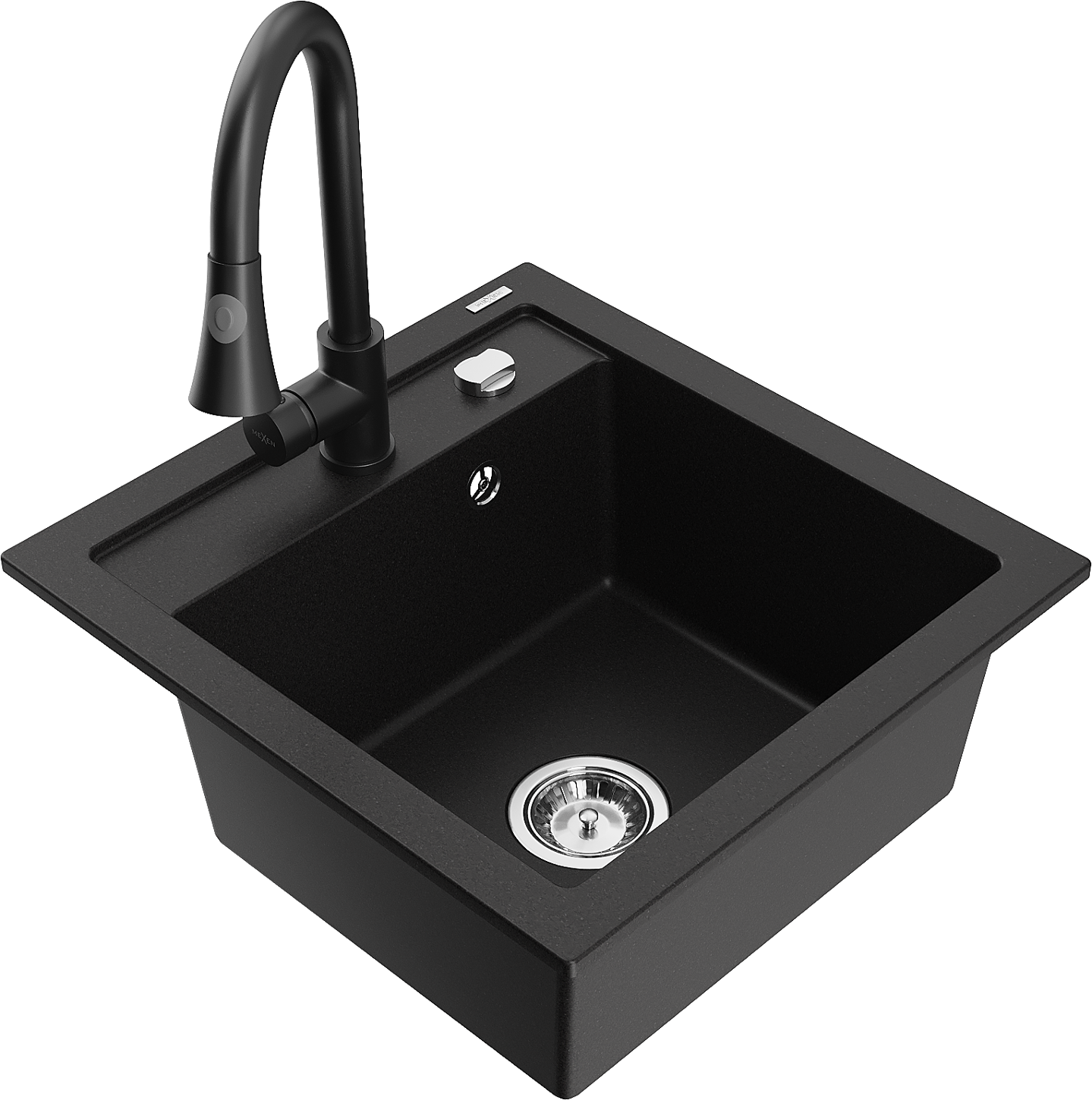 Mexen Vito lavello in granito a 1 vasca con rubinetto da cucina Elia, nero - 6503-77-670101-70