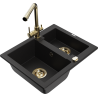 Mexen Carlos lavello in granito 1,5 vasche con rubinetto da cucina Duero, nero/metallizzato argento - 6518-73-671600-50