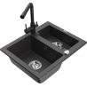 Mexen Carlos lavello in granito a 1,5 vasche con rubinetto cucina Duero, nero/metallo argentato - 6518-73-671600-70