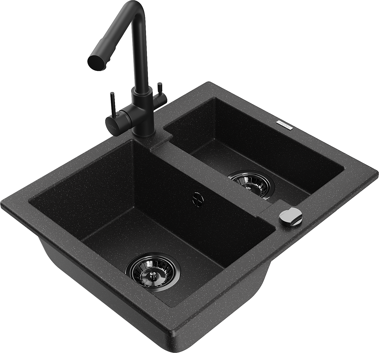 Mexen Carlos lavello in granito 1,5 vasca con rubinetto da cucina Duero, nero/argento metallizzato - 6518-73-671600-70-B