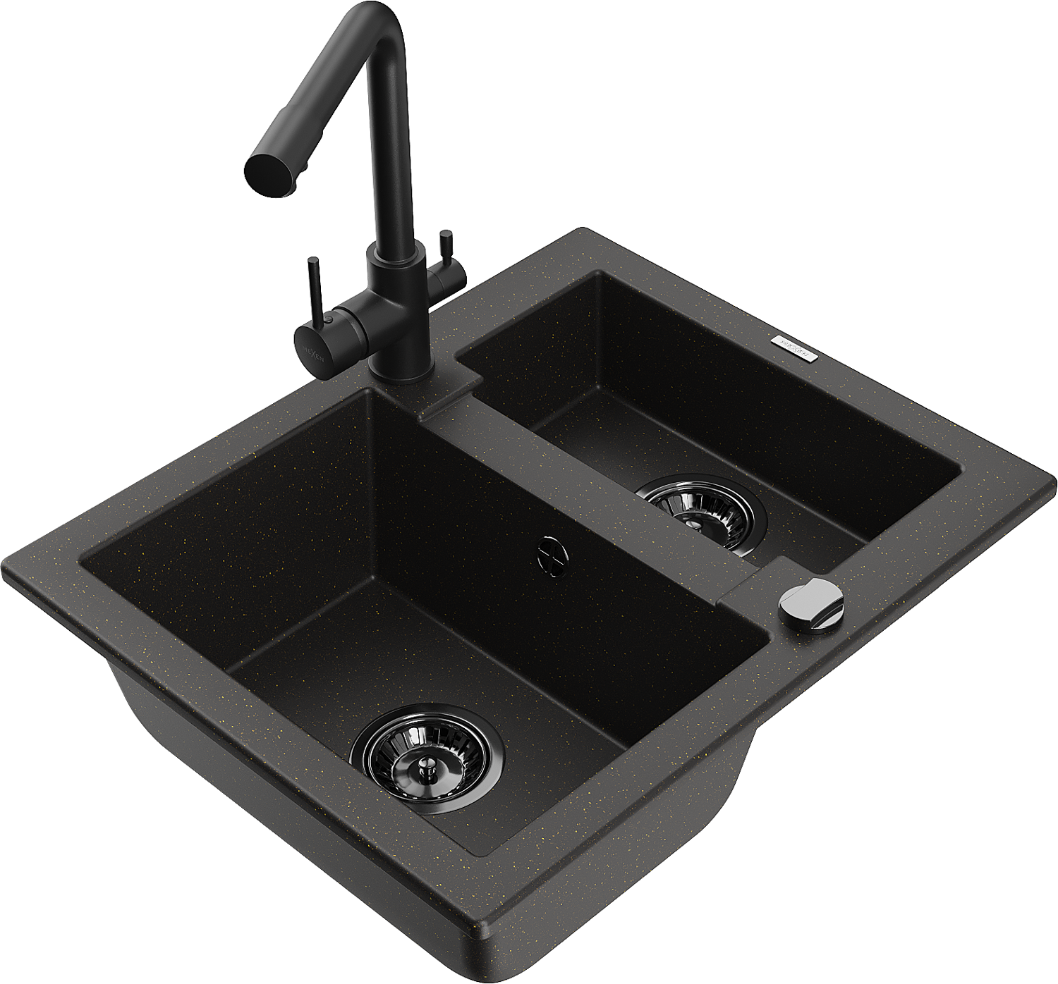 Mexen Carlos lavello in granito a 1,5 vasche con rubinetto da cucina Duero, nero/oro metallizzato - 6518-75-671600-70-B
