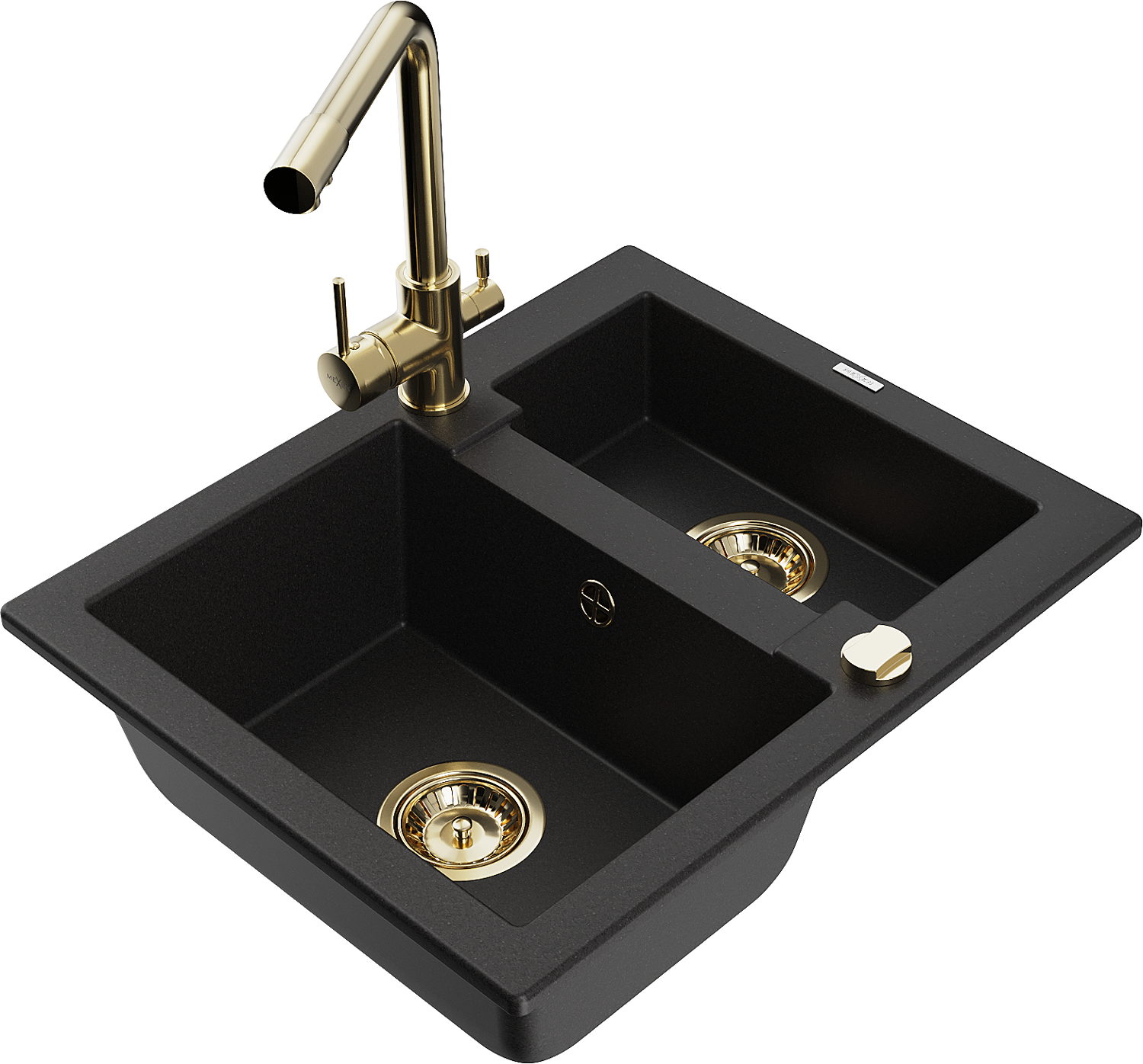 Mexen Carlos lavello in granito 1,5 vasca con rubinetto da cucina Duero, nero - 6518-77-671600-50