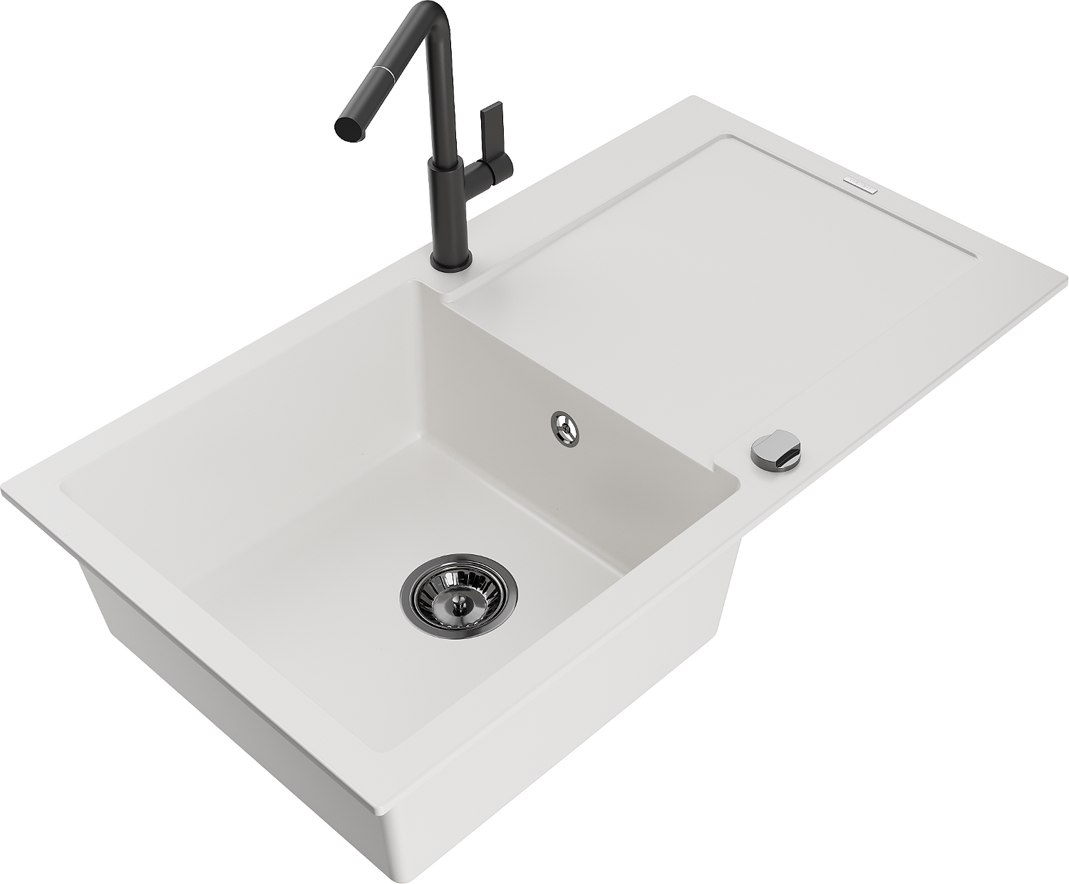 Mexen Leo lavello in granito 1-vasca con scolapiatti e rubinetto da cucina Flora, bianco - 6501-20-670401-70-B