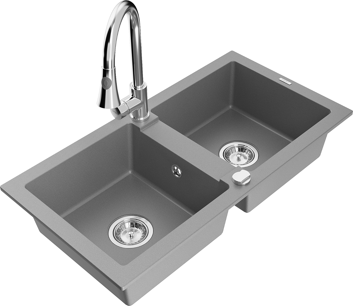 Mexen Mario lavello da cucina in granito a 2 vasche con miscelatore cucina Elia, grigio - 6504-71-670101-00