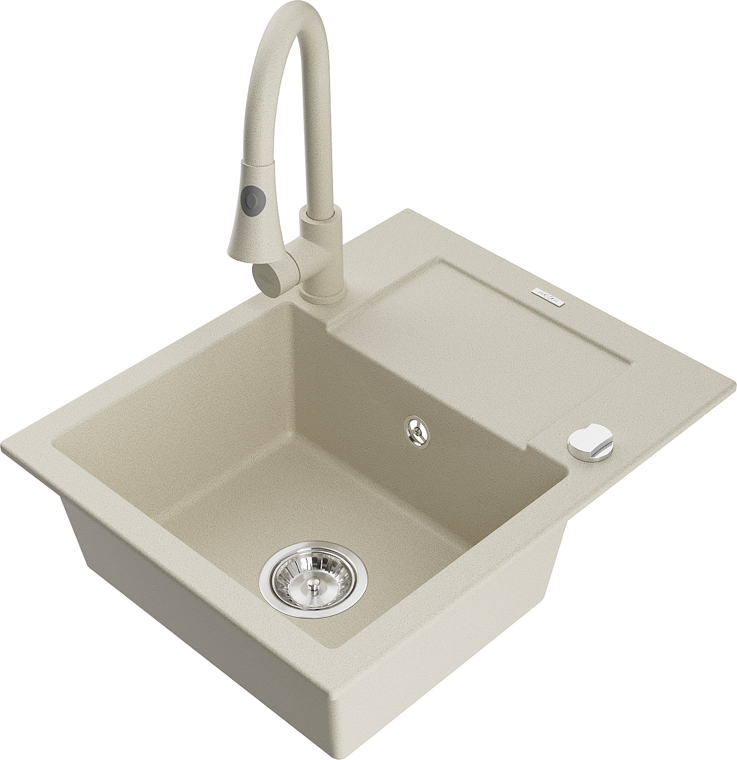Mexen Enzo lavello in granito con 1 vasca con scolapiatti e rubinetto da cucina Elia, beige - 6506-69-670101-69
