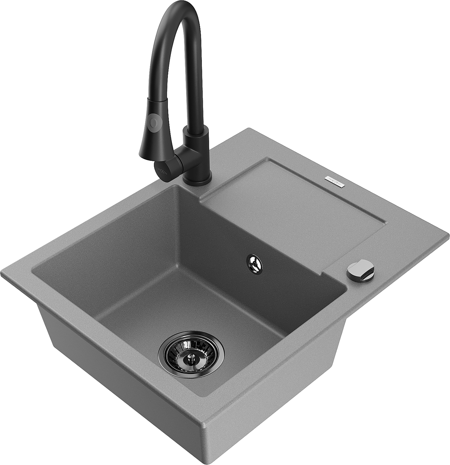 Mexen Enzo lavello in granito a 1 vasca con sgocciolatoio e rubinetto da cucina Elia, grigio - 6506-71-670101-70-B