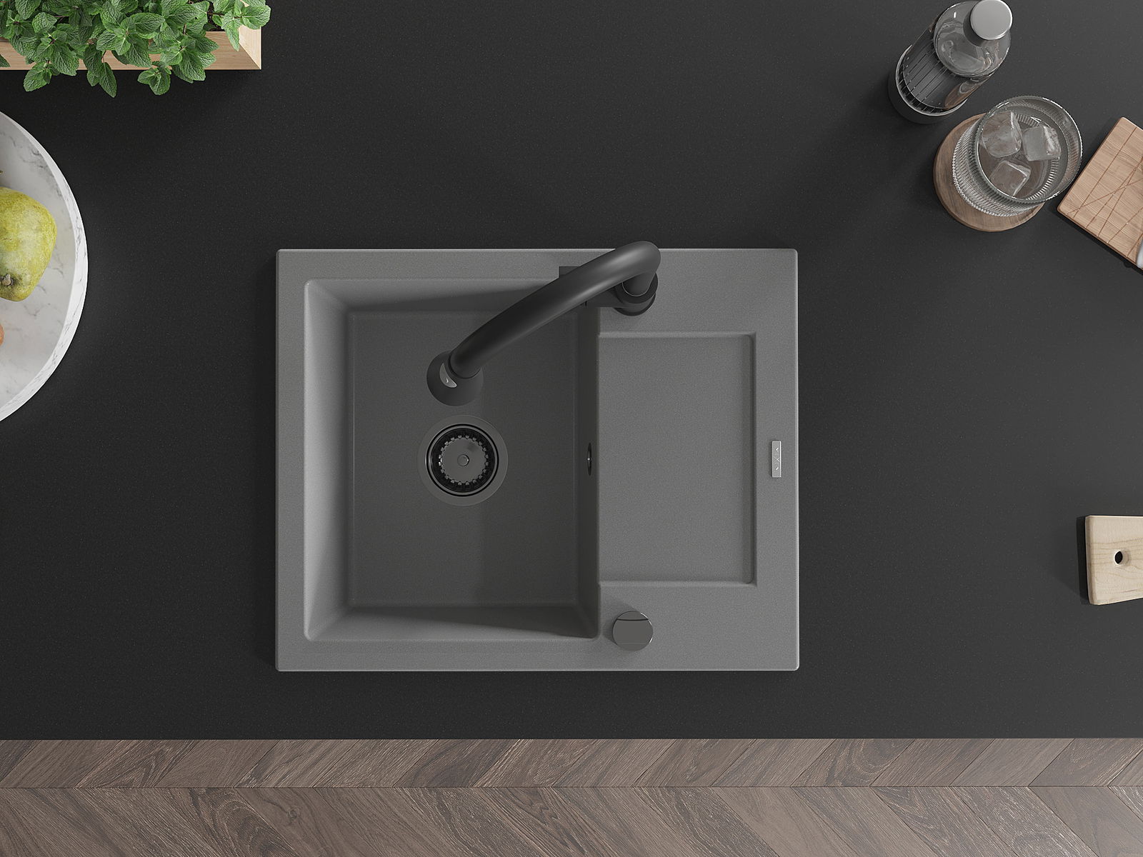 Il lavello è realizzato in granito di alta qualità. Rappresenta un complemento elegante e, soprattutto, pratico per ogni cucina, indipendentemente dal suo stile. L'alta qualità e la durata del granito garantiscono un utilizzo che dura per molti anni.
