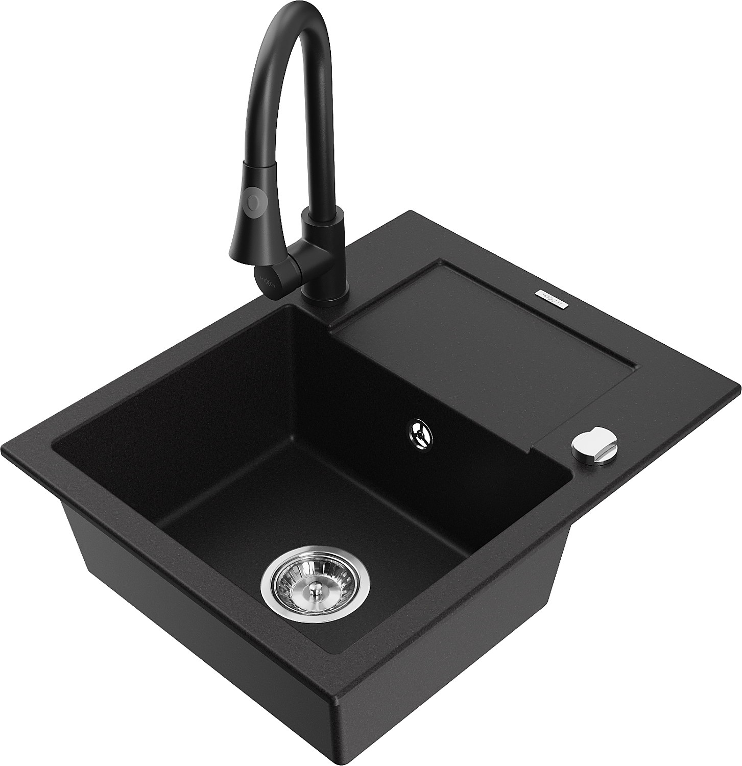 Mexen Enzo lavello in granito a 1 vasca con sgocciolatoio e miscelatore da cucina Elia, nero - 6506-77-670101-70