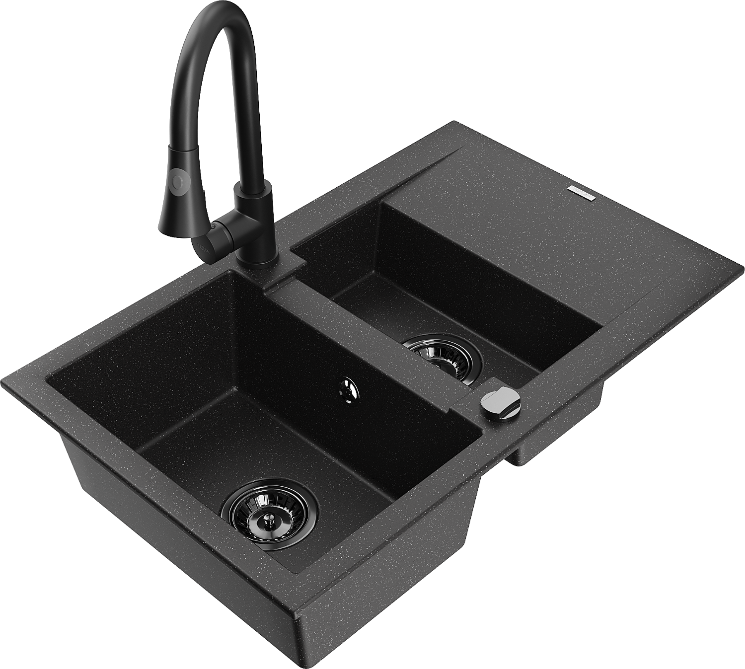 Mexen Gaspar lavello in granito 1,5 vasche con sgocciolatoio e rubinetto da cucina Elia, nero/argento - 6507-73-670101-70-B