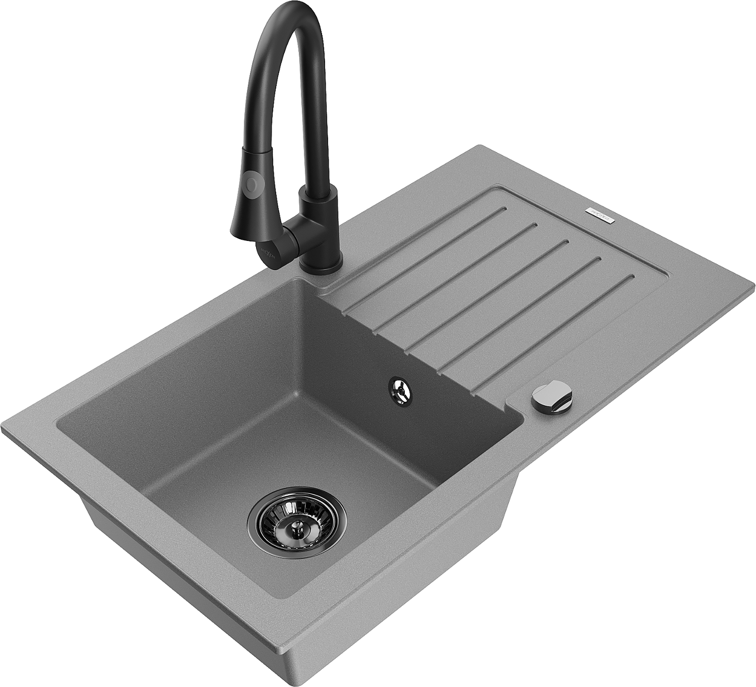 Mexen Pablo lavello in granito a 1 vasca con scolapiatti e rubinetto da cucina Elia, grigio - 6510-71-670101-70-B